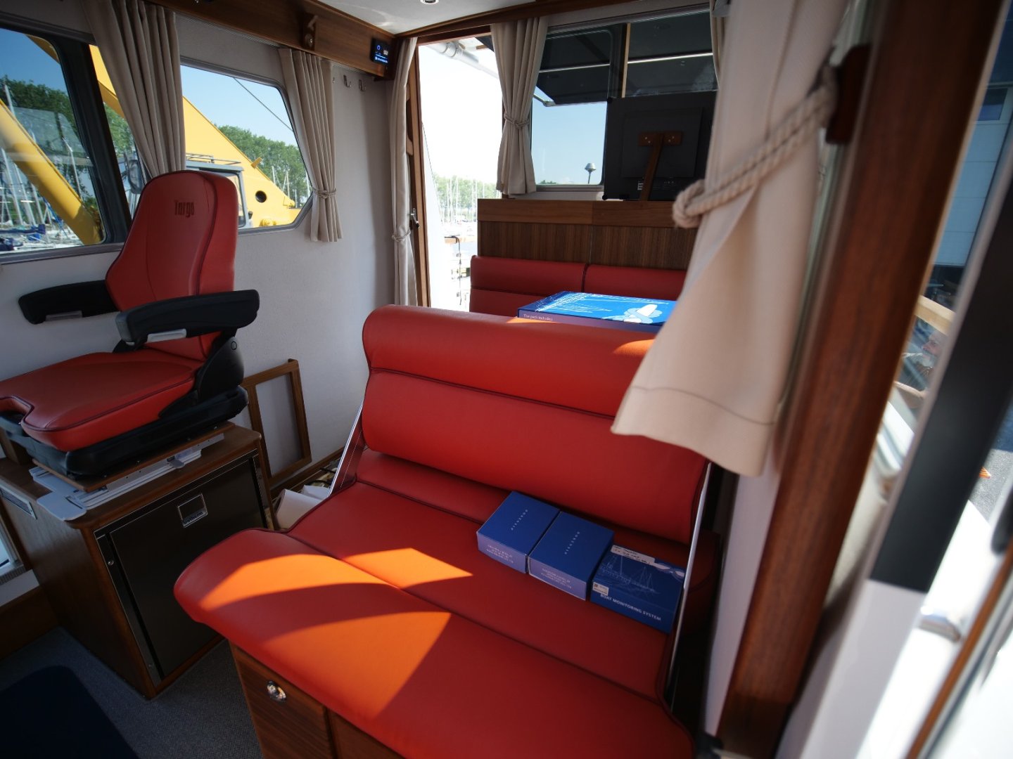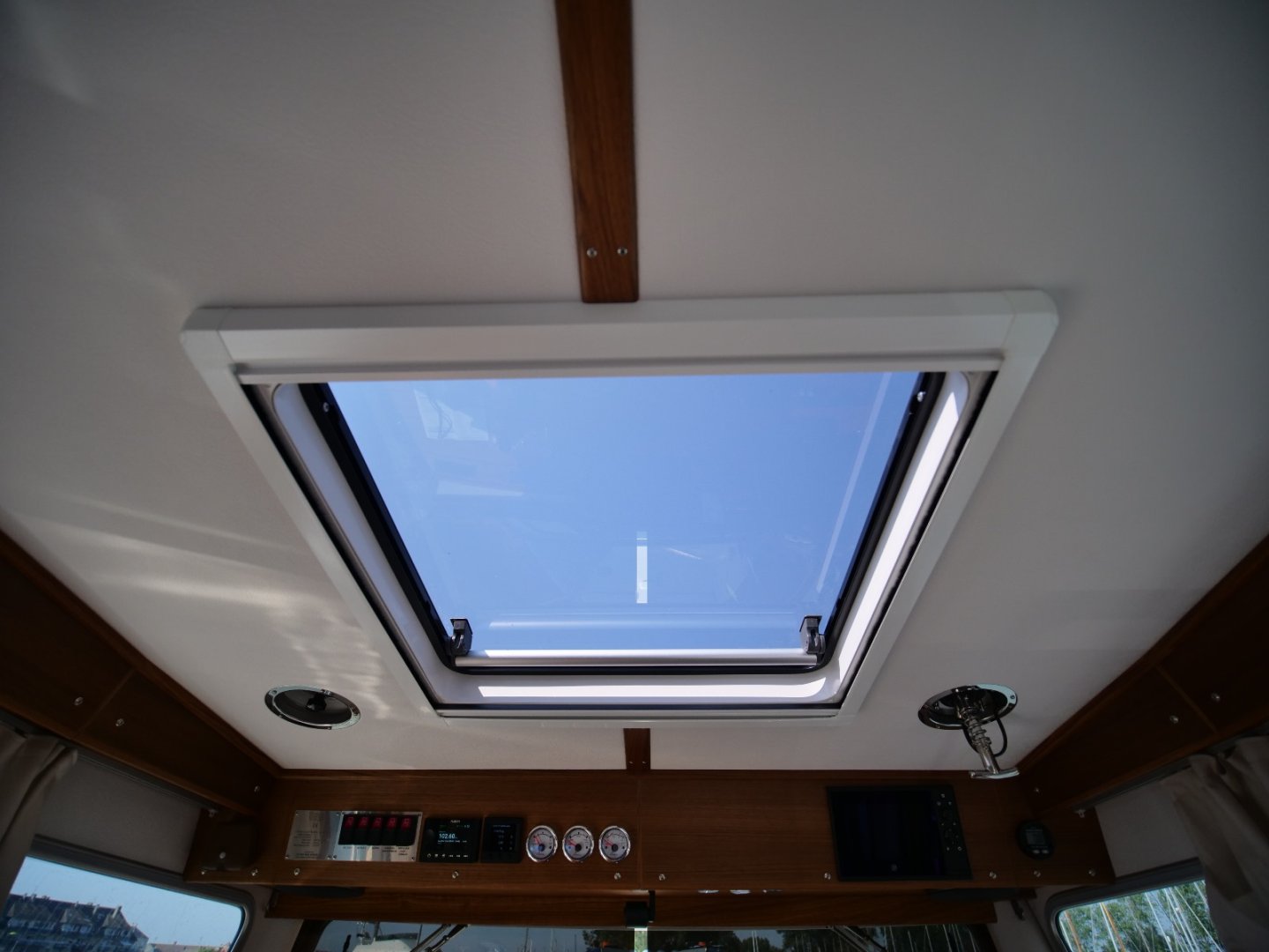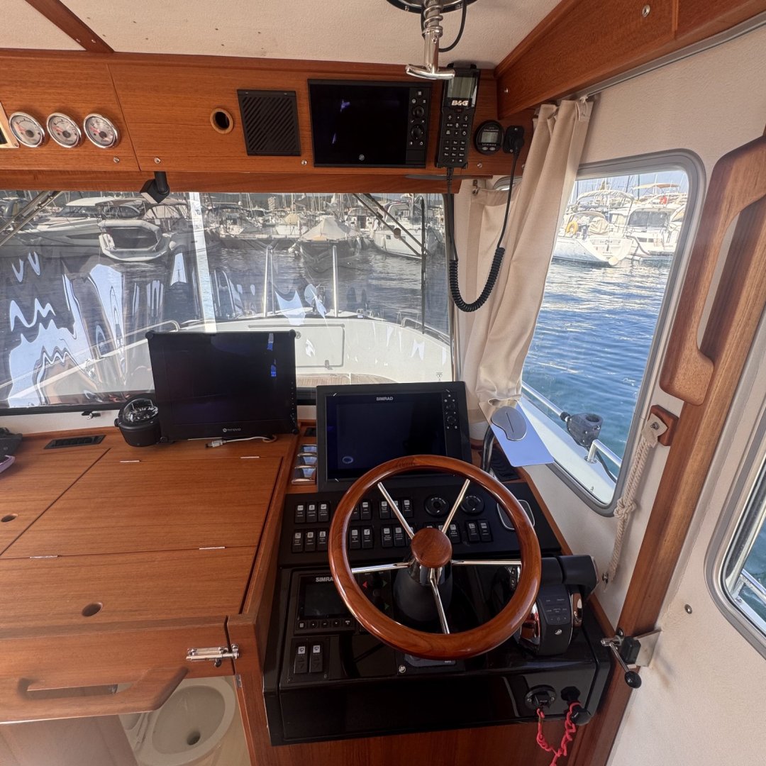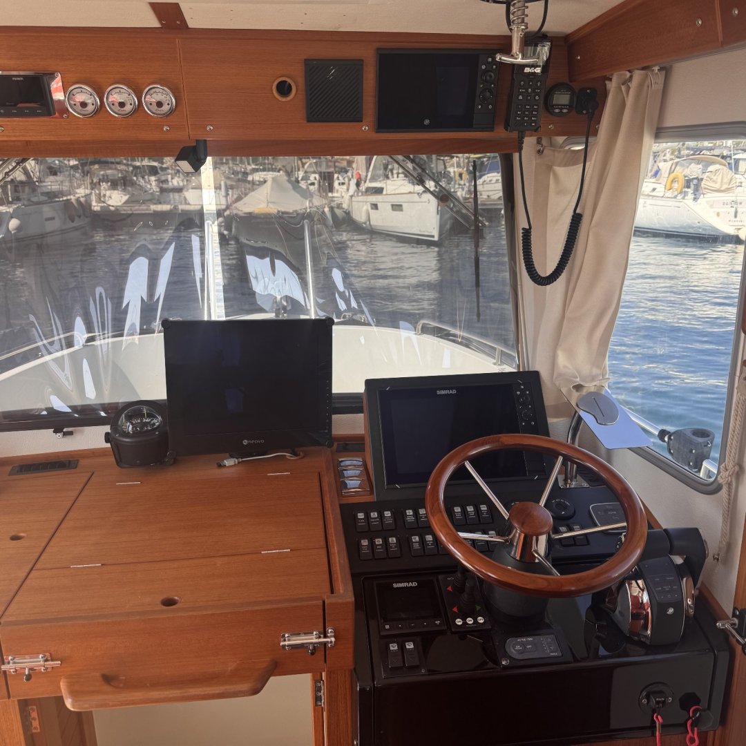 Poste de pilotage complet sur cockpit arrière au dos de la timonerie