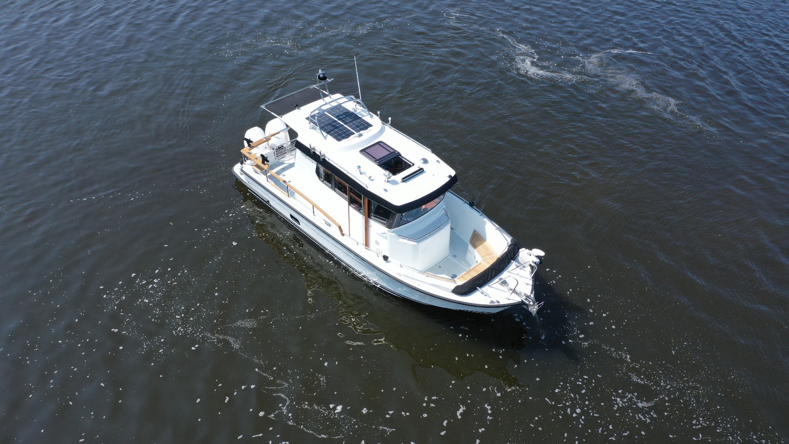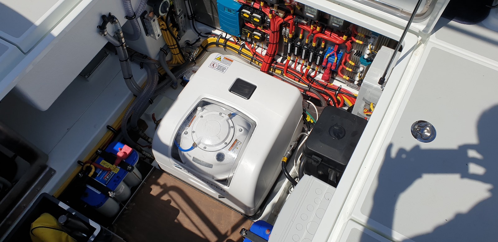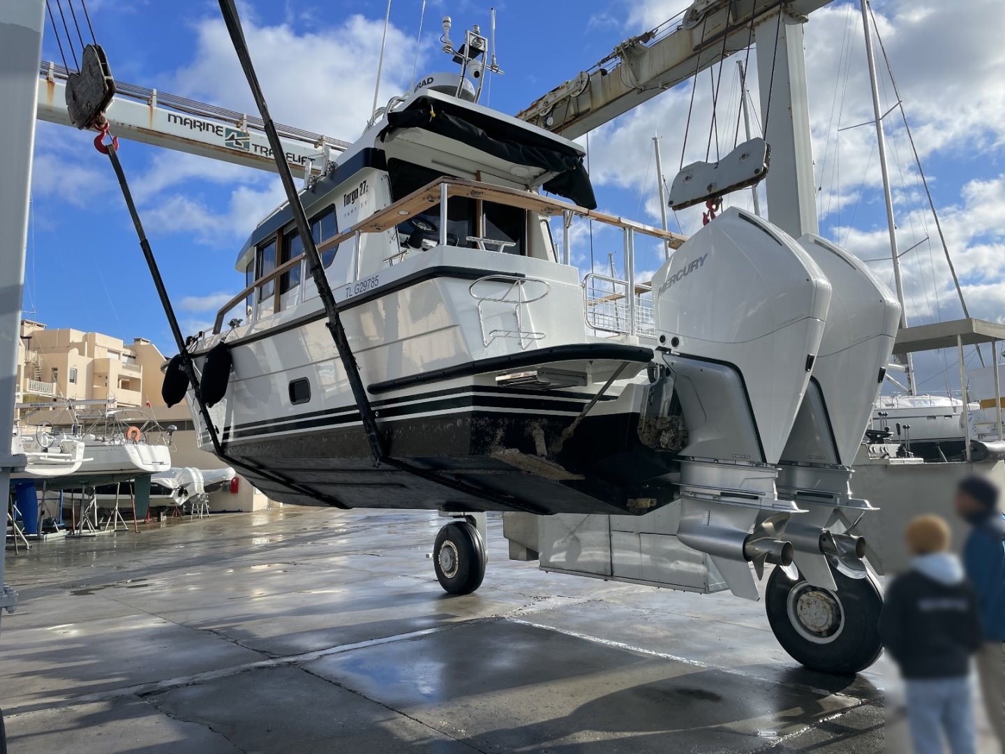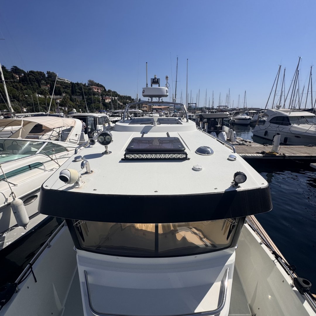 Avec sa double motorisation Mercury Verado V8 2x300CV, son stabilisateur gyroscopique Seakeeper et ses propulseurs d’étrave et de poupe, ce bateau offre une navigation stable, performante et dans le plus grand confort.