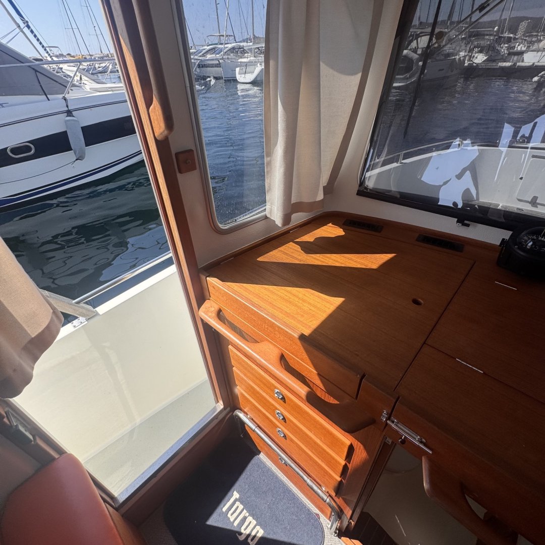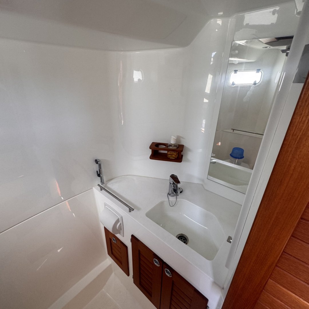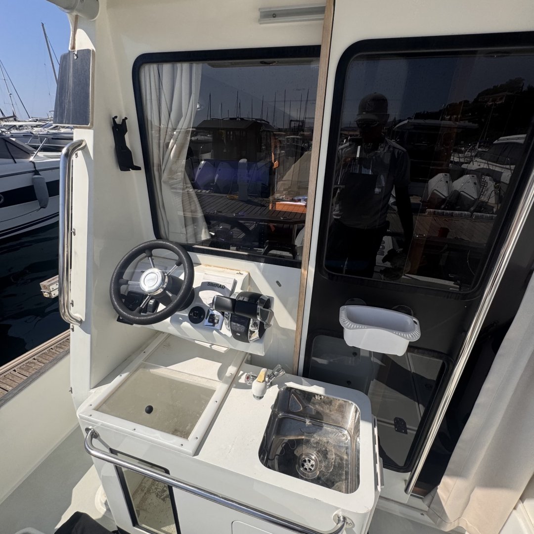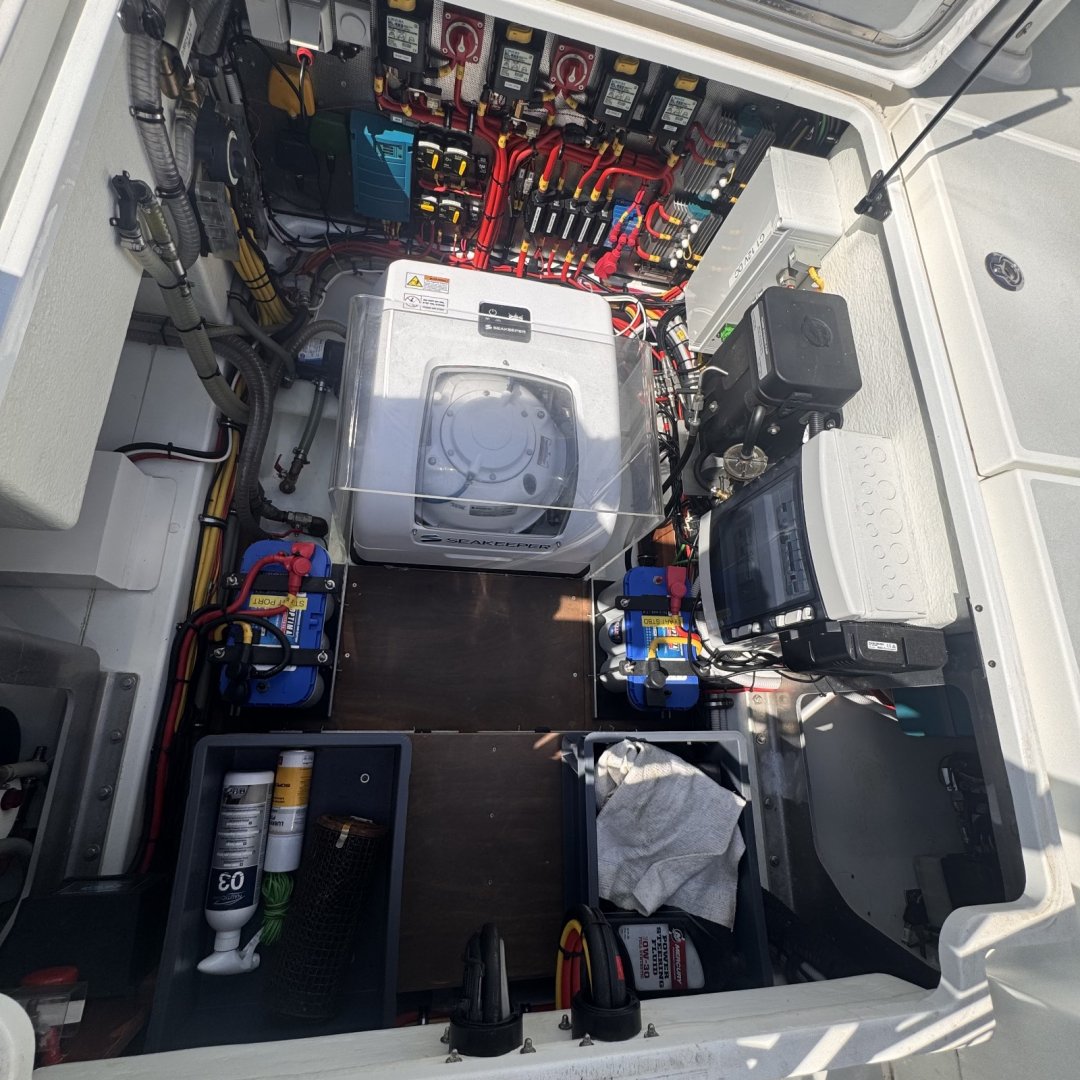 Avec sa double motorisation Mercury Verado V8 2x300CV, son stabilisateur gyroscopique Seakeeper et ses propulseurs d’étrave et de poupe, ce bateau offre une navigation stable, performante et dans le plus grand confort.