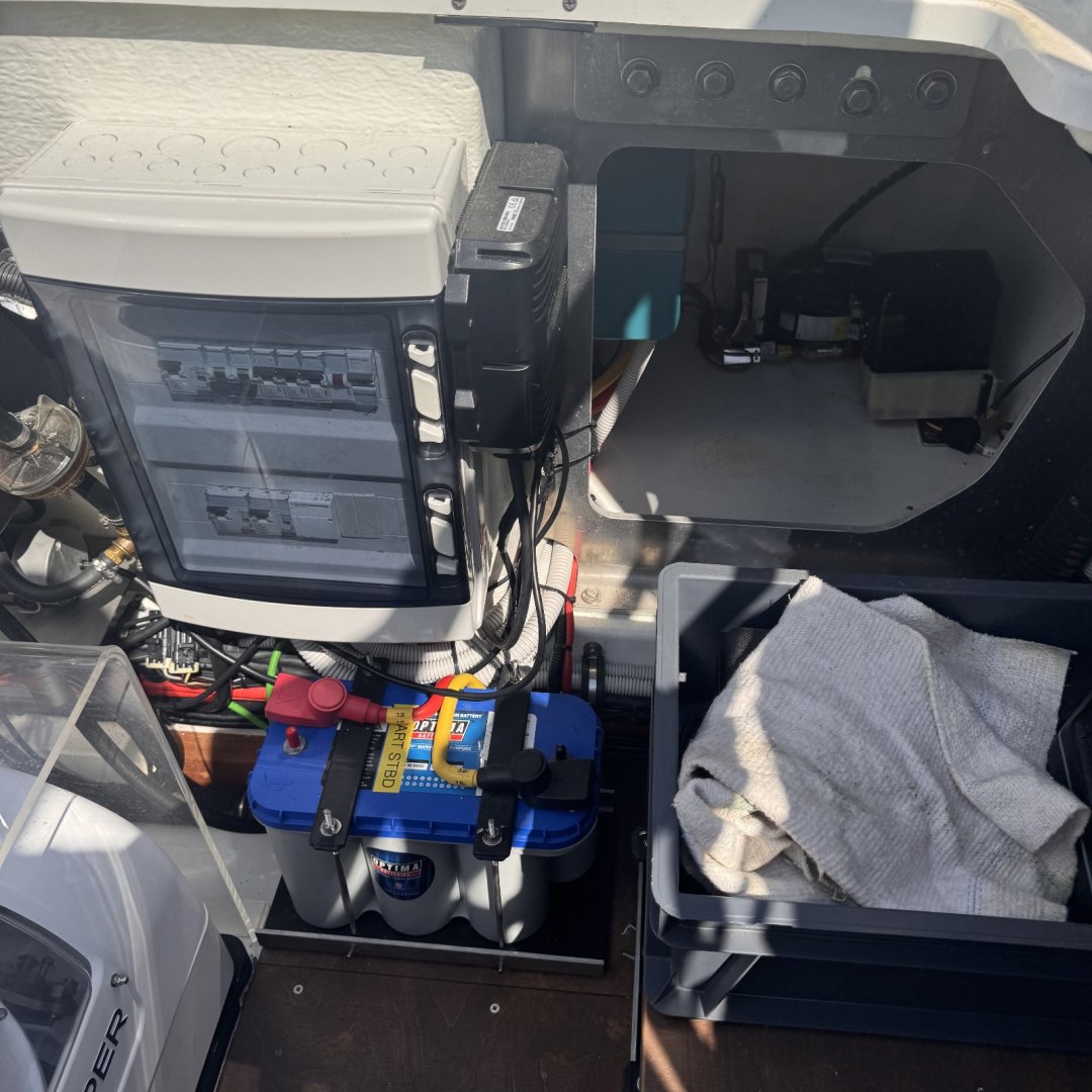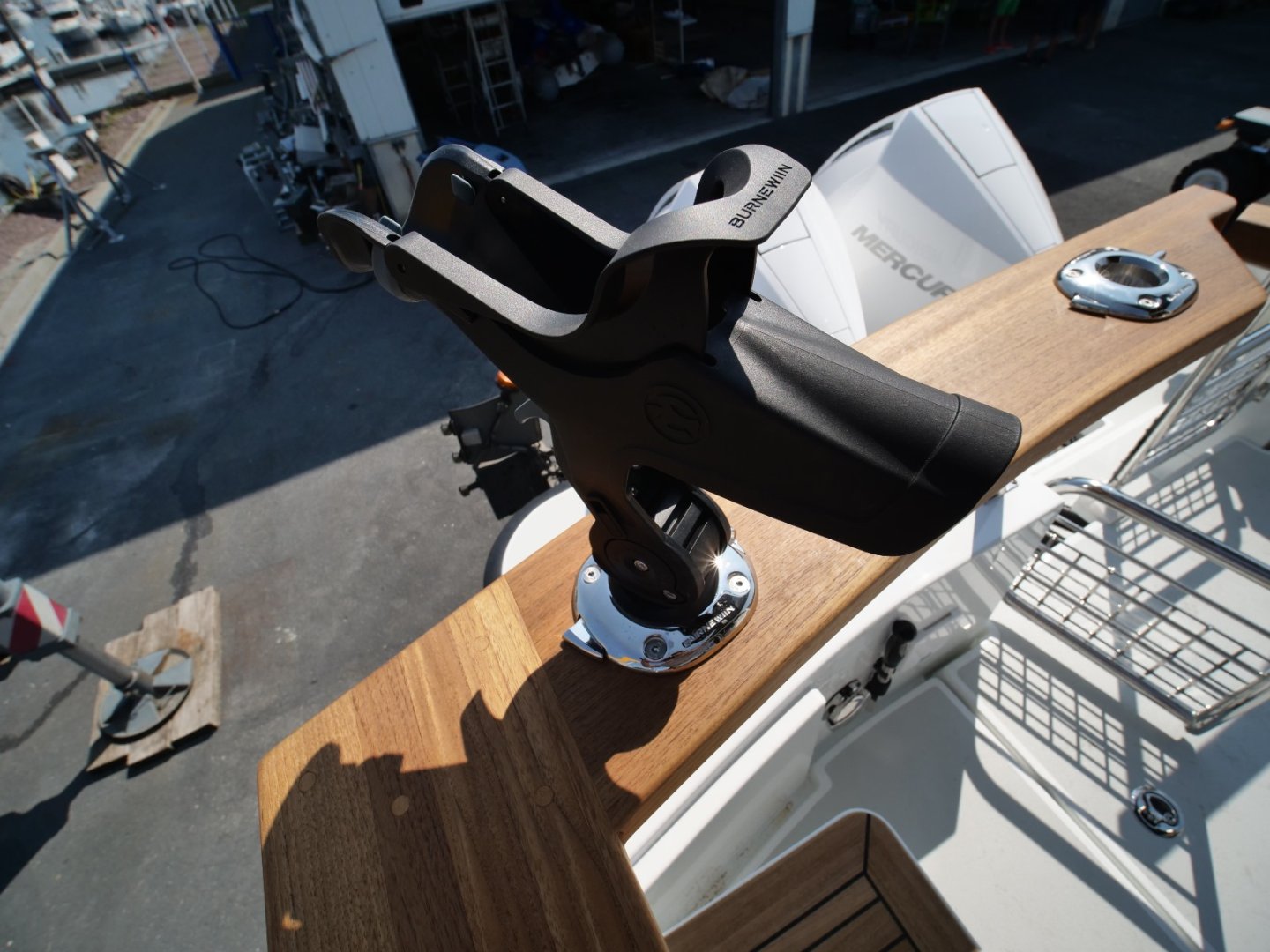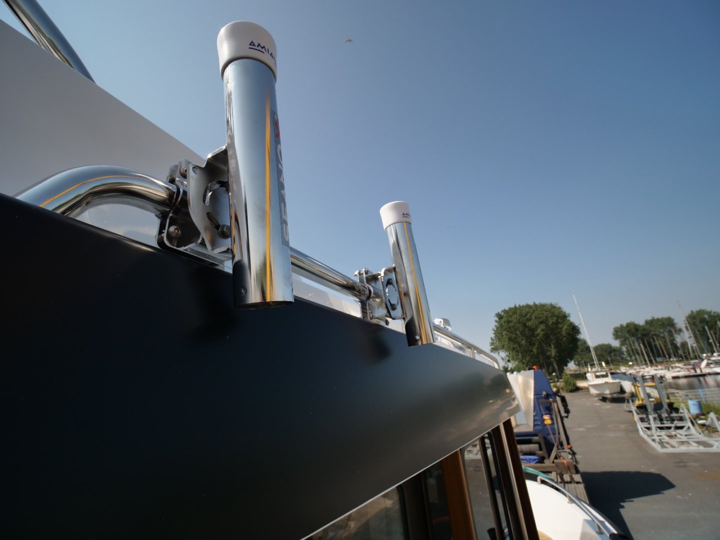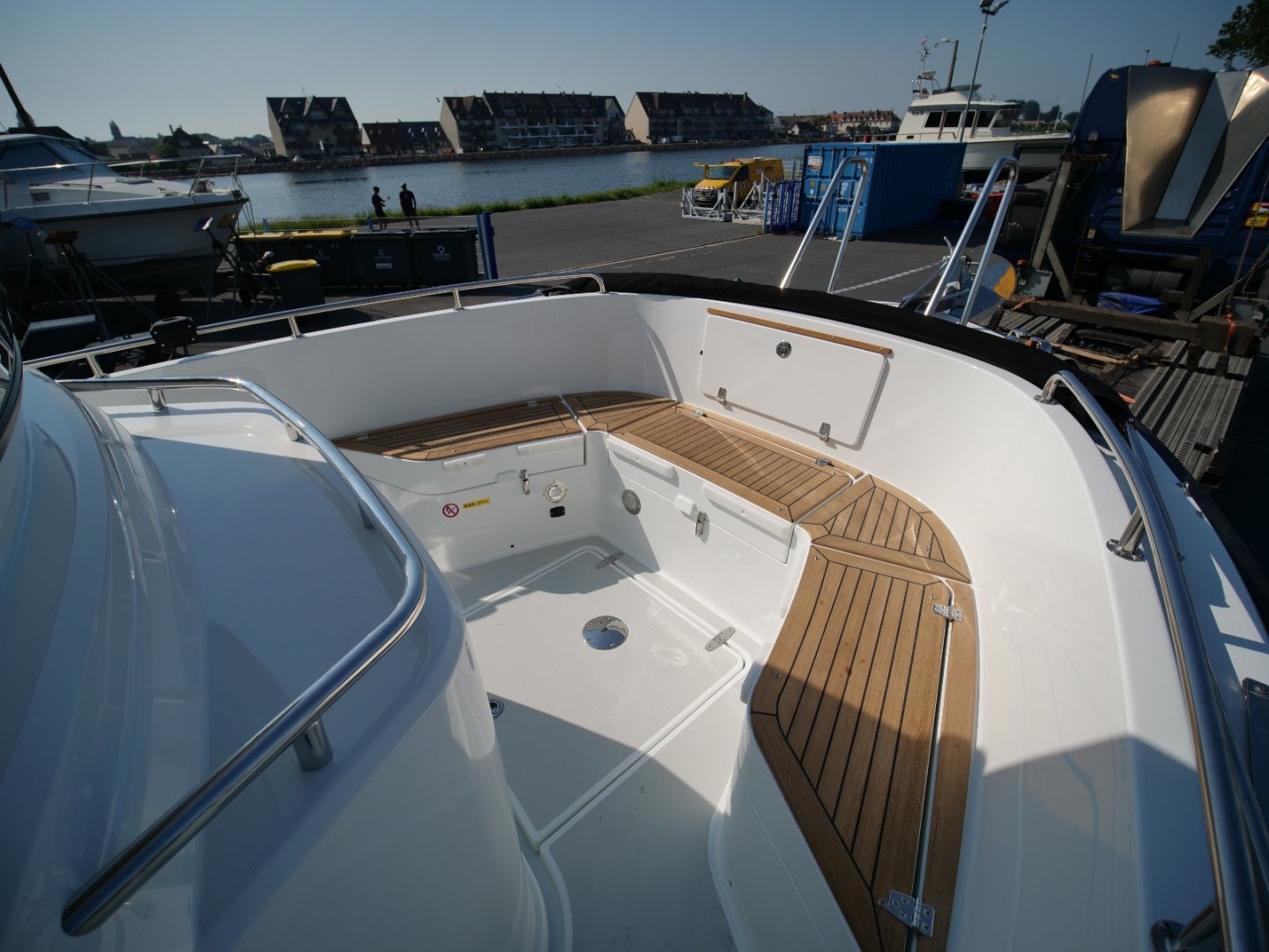 Avec sa double motorisation Mercury Verado V8 2x300CV, son stabilisateur gyroscopique Seakeeper et ses propulseurs d’étrave et de poupe, ce bateau offre une navigation stable, performante et dans le plus grand confort.