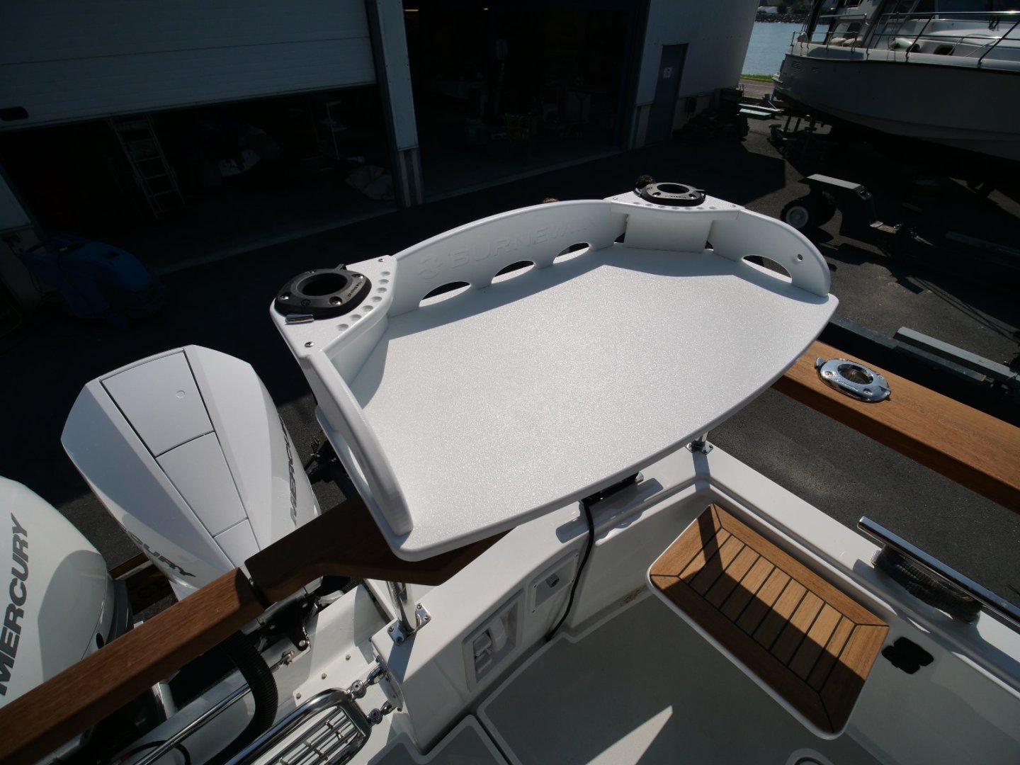 Équipé pour la pêche et les loisirs, il dispose d’un poste de pilotage arrière, de nombreux rangements, d’un vivier, d’un moteur MinnKota, et d’un pack Burnewiin complet.