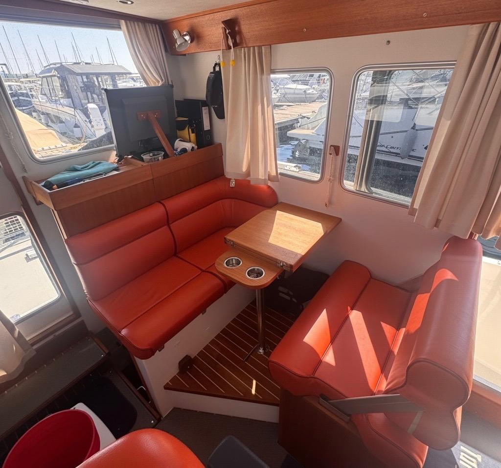 L’intérieur, chaleureux et fonctionnel, propose une cabine confortable, une grande salle d’eau ainsi qu'un coin couchage pour 4 personnes