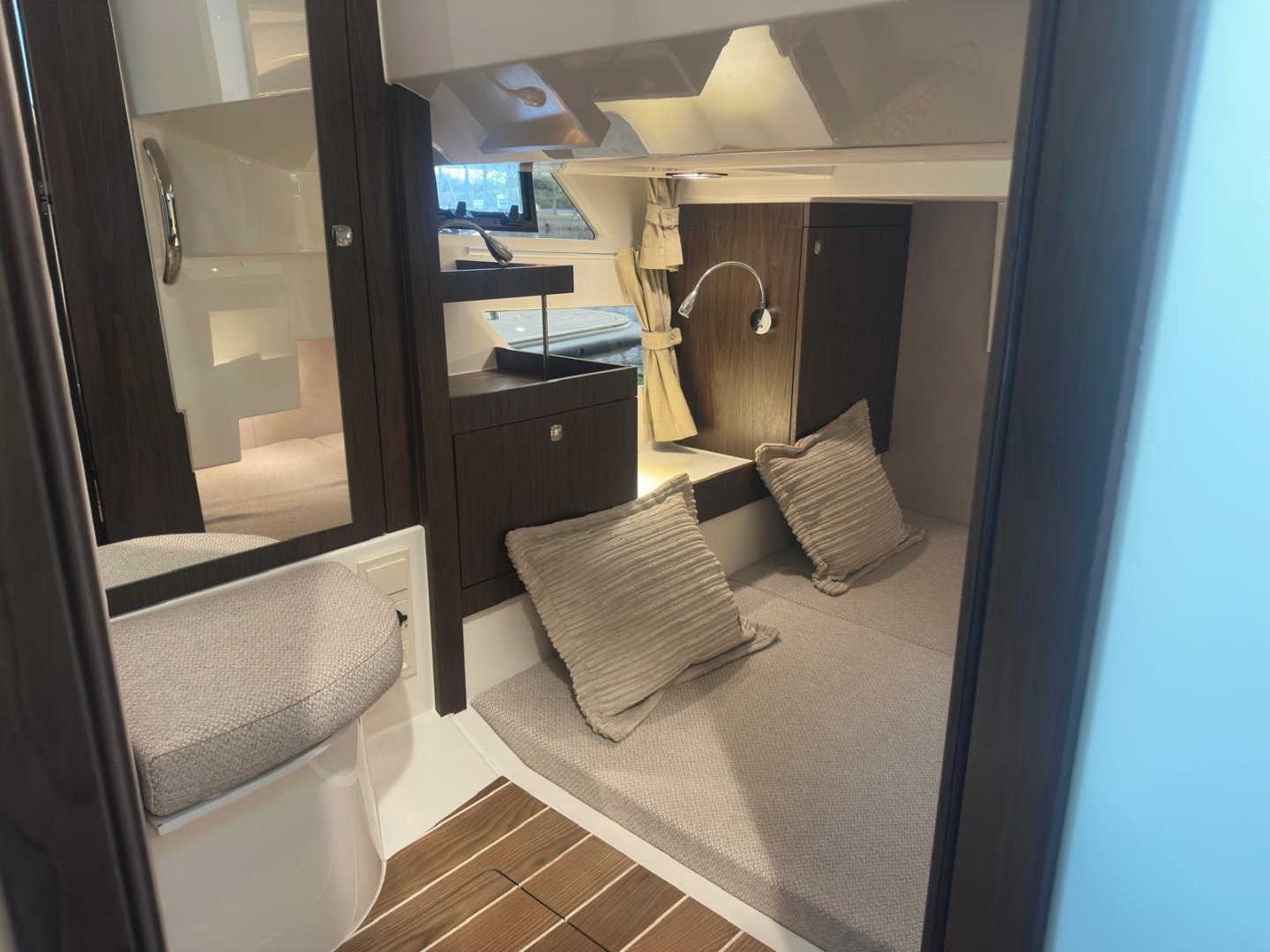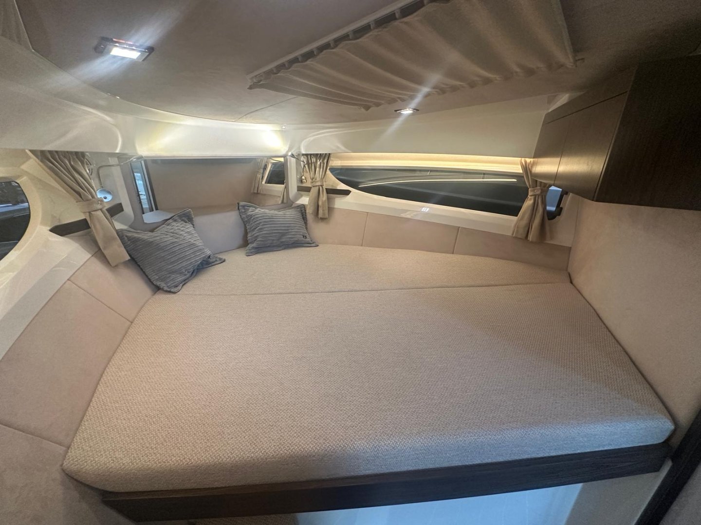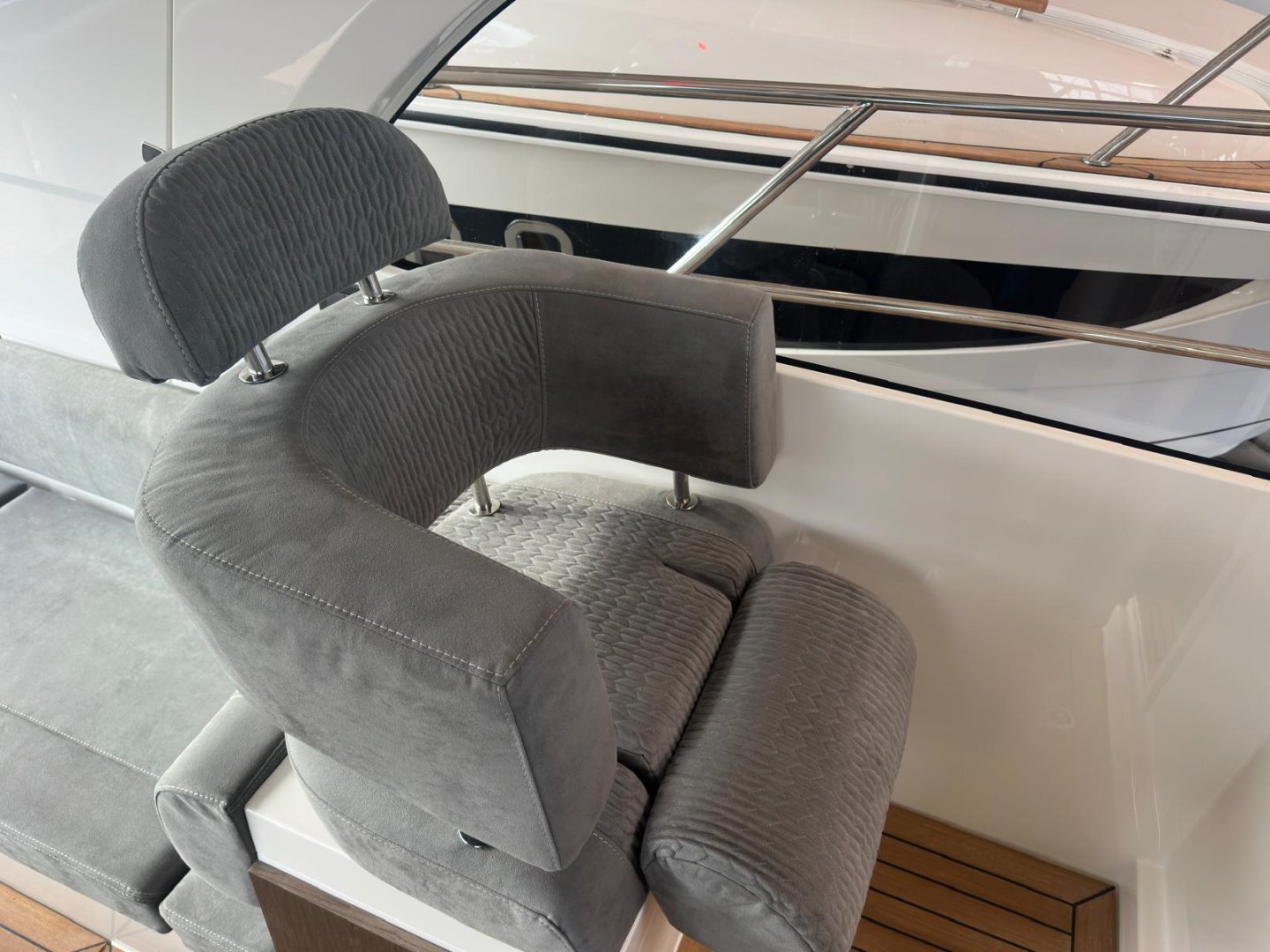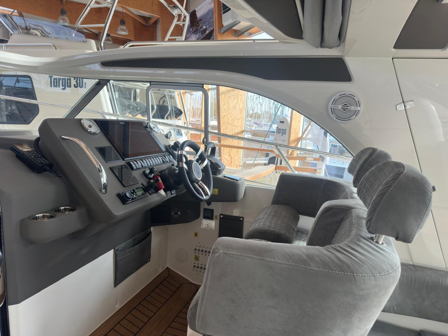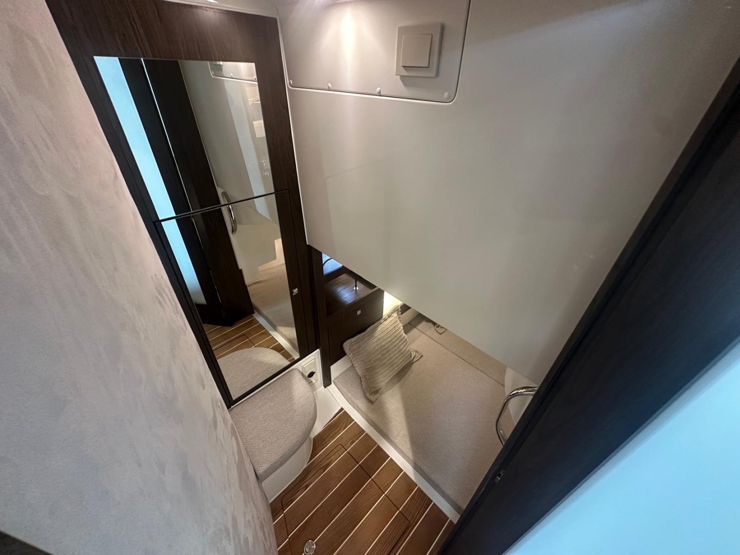 Il est équipé de 2 moteurs Mercury Diesel de 270cv et bénéficie d’un équipement complet de série avec des options essentielles : joystick de manoeuvre, pilote automatique, Humphree Interceptors, électronique Simrad très complète, avec un grand écran de 16 pouces et une VHF.