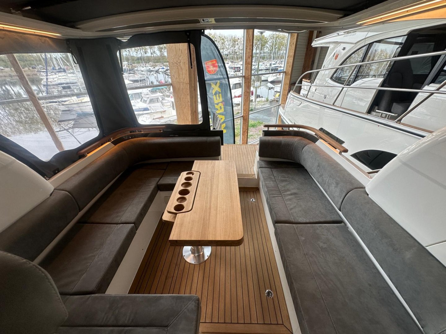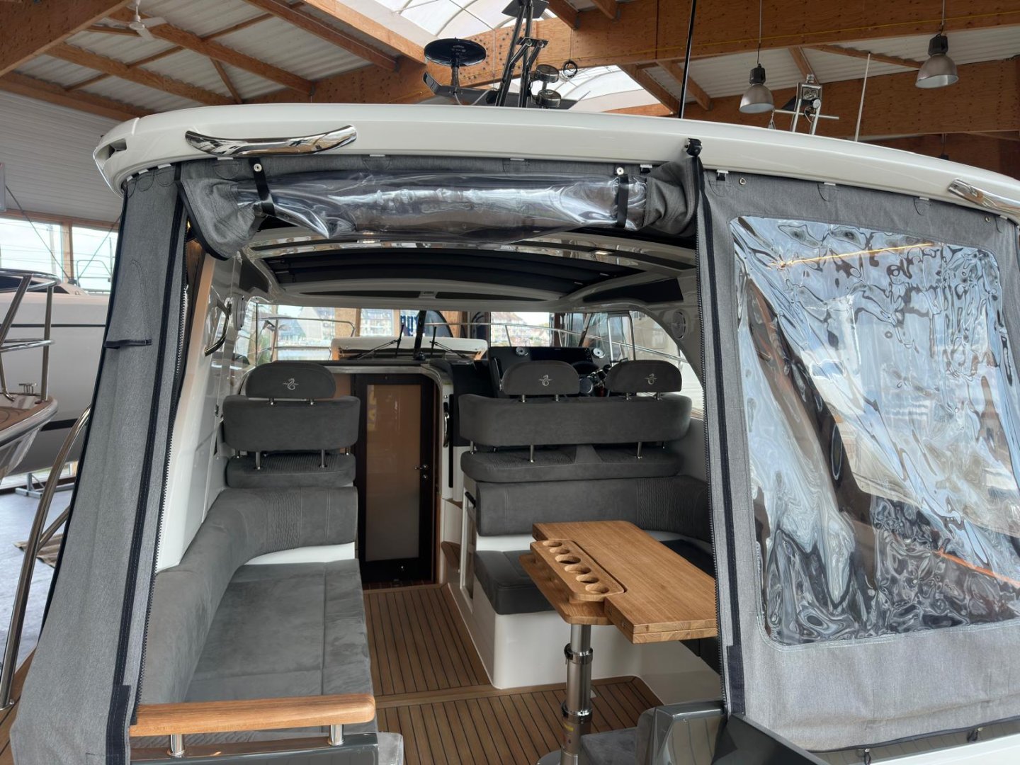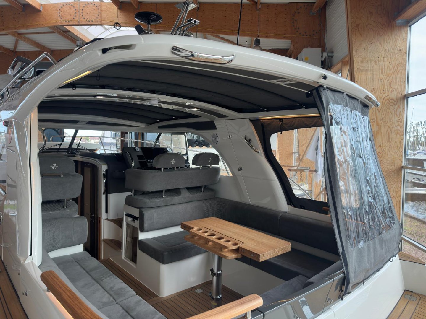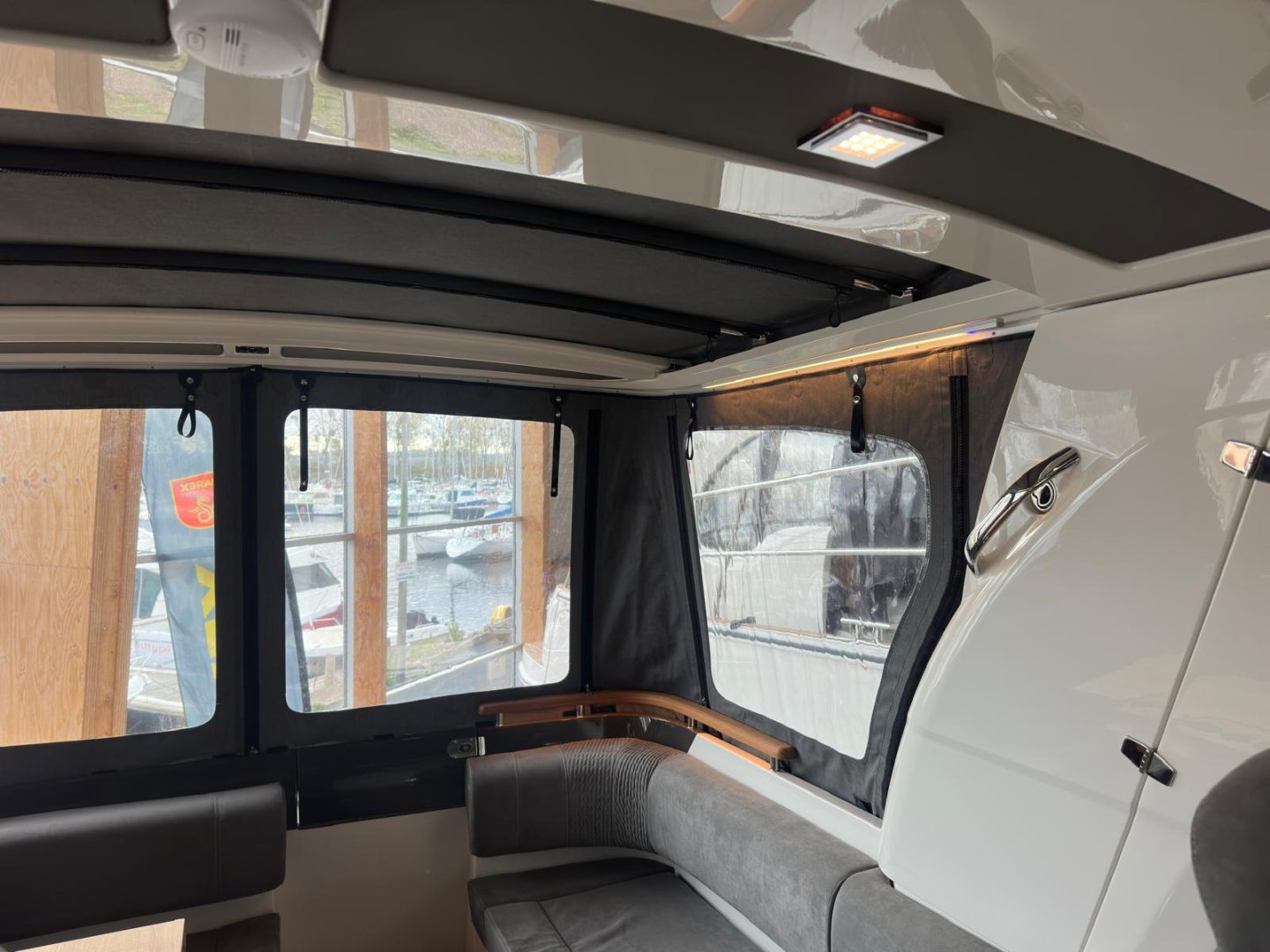Le concept unique Marex permet de fermer totalement le cockpit en quelques secondes, transformant l’espace de vie extérieur en un véritable salon abrité. Profitez du bateau même en hiver, protégé du vent, du froid et des intempéries.