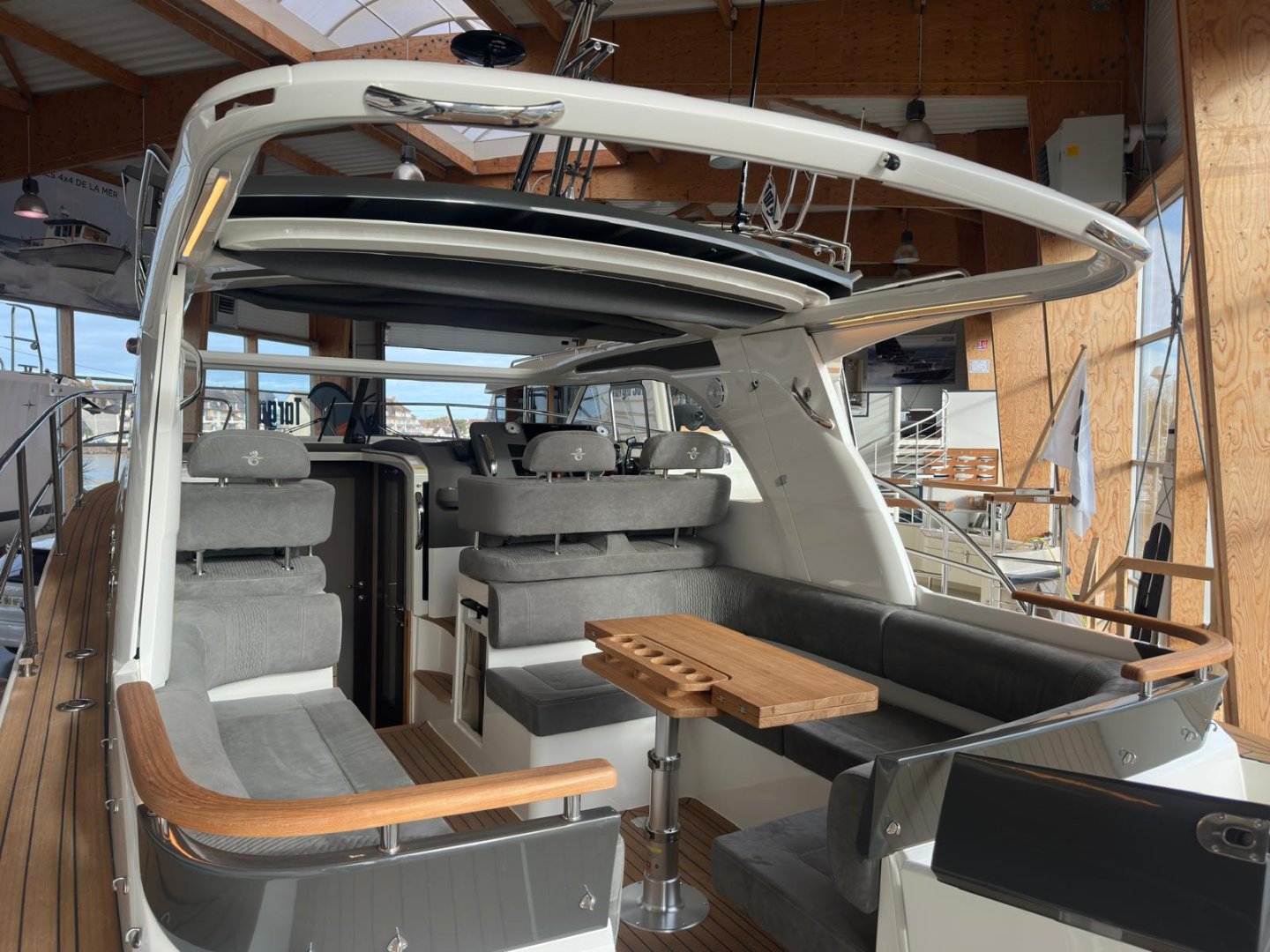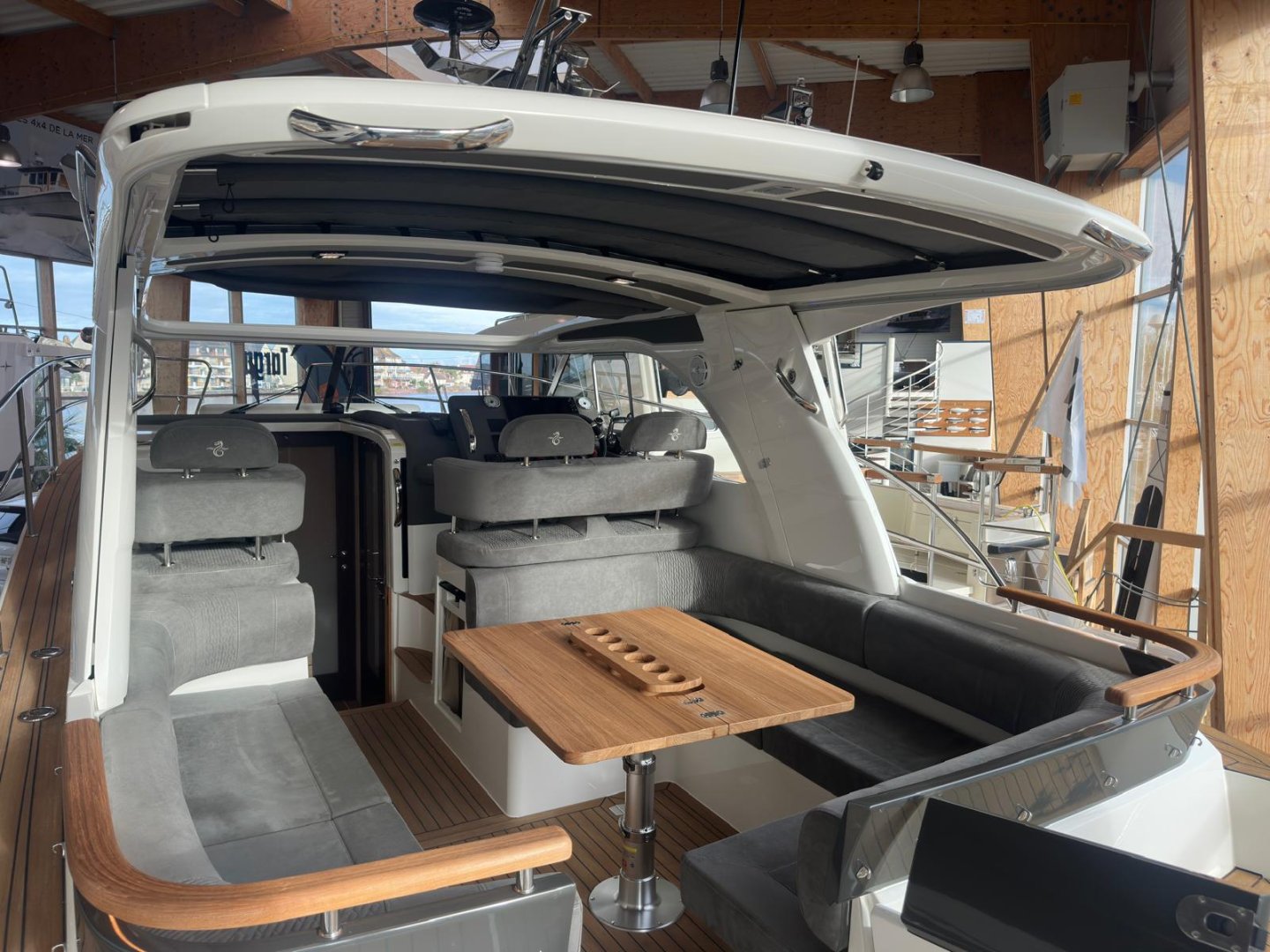 Grand cockpit pouvant être fermé, permettant de déjeuner confortablement jusqu'à 8 personnes durant toute l'année