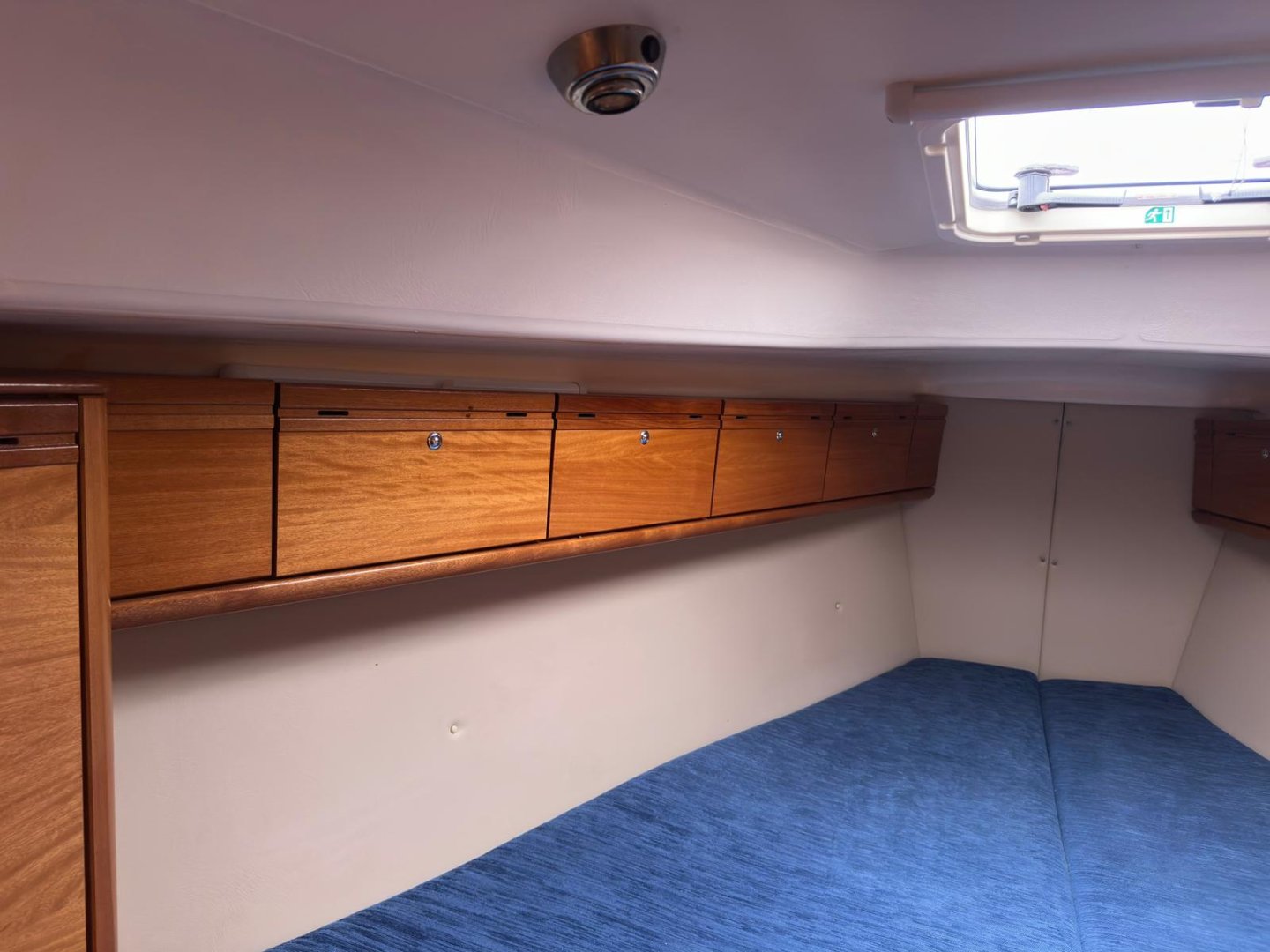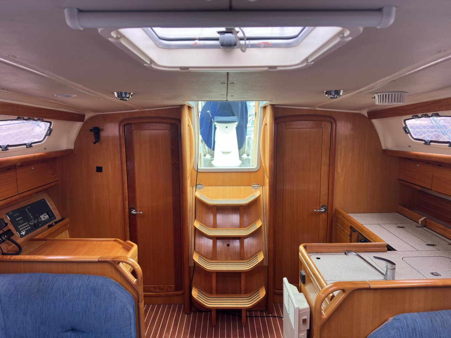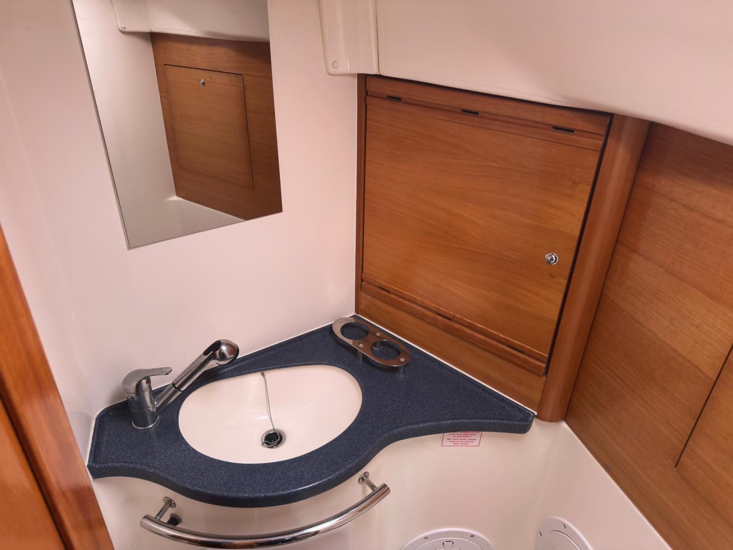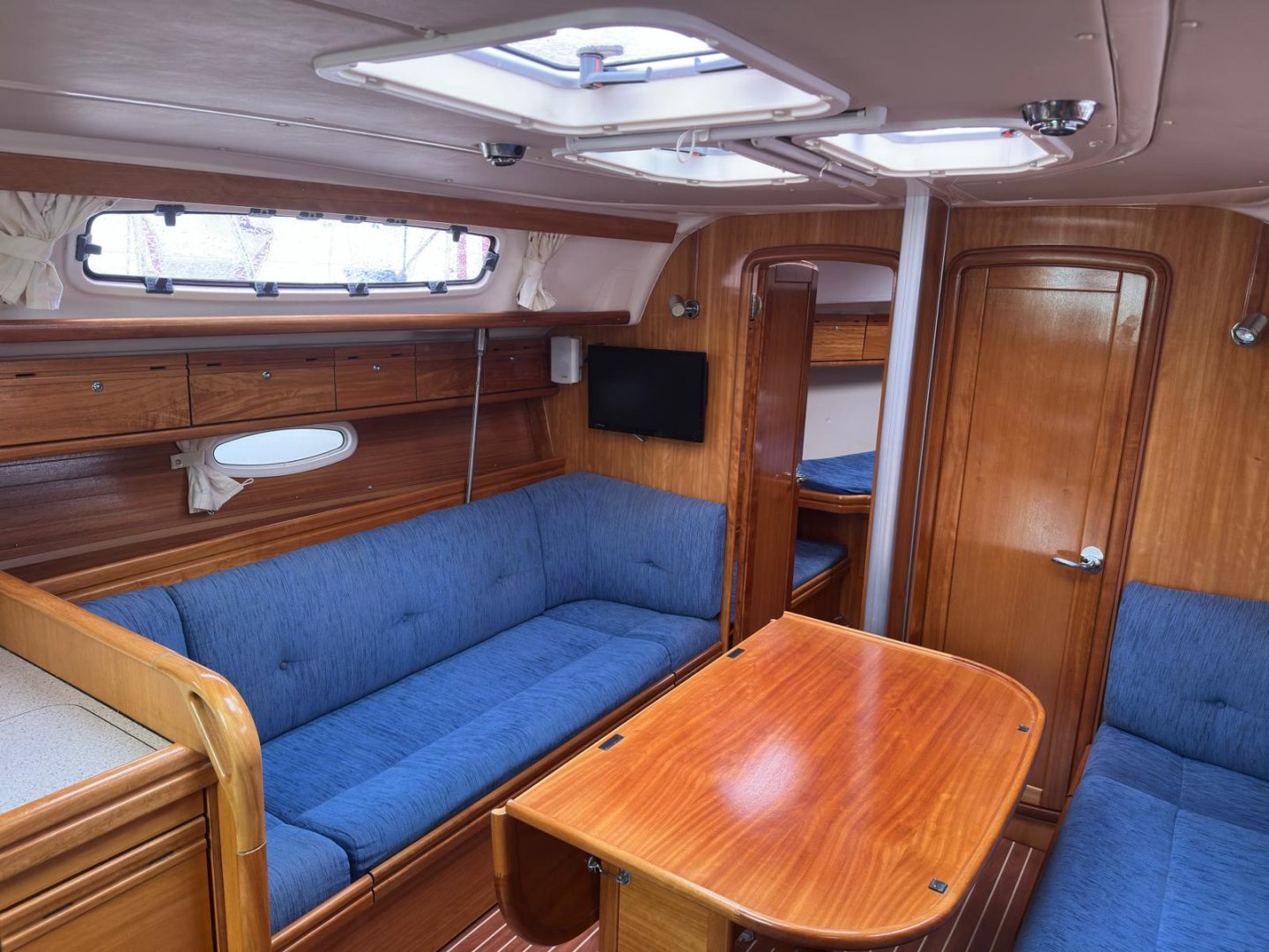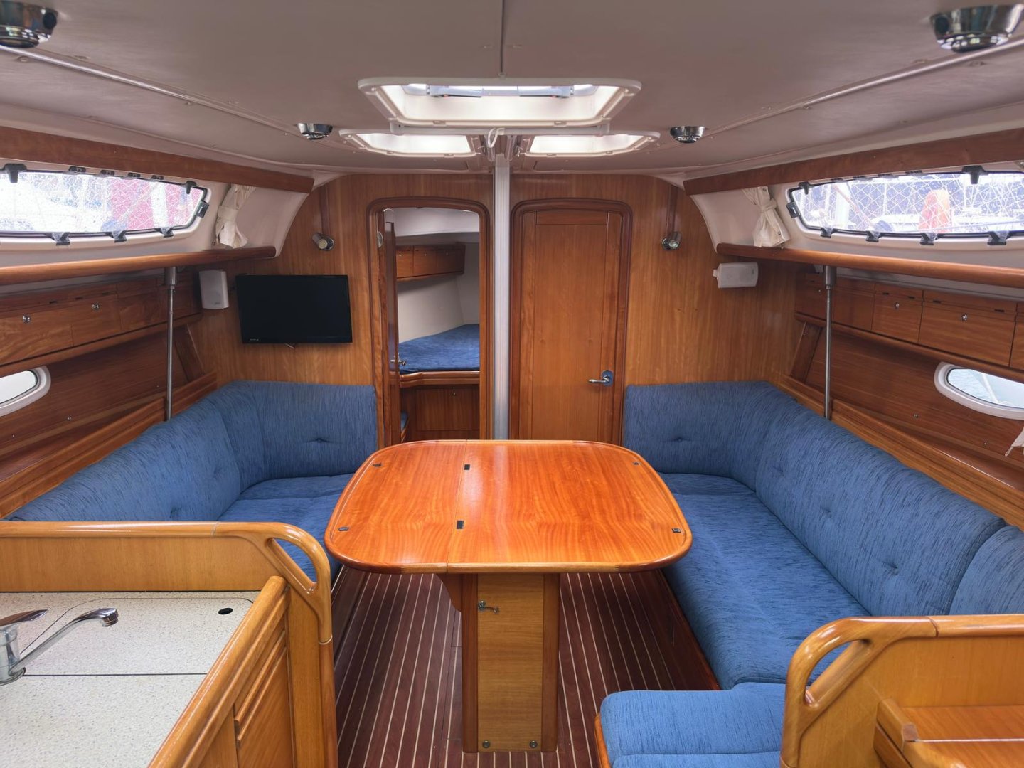 Carré lumineux, cuisine en L, 3 cabines, salle d’eau avec douche, eau chaude, sellerie soignée et nombreux rangements. Capacité d'eau totale de 360 L pour une vraie autonomie en croisière.