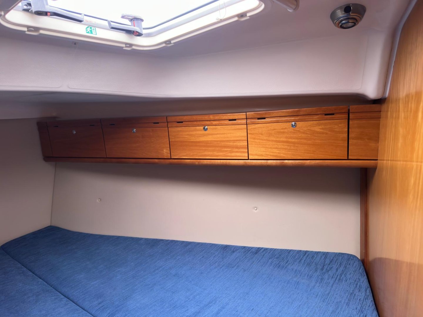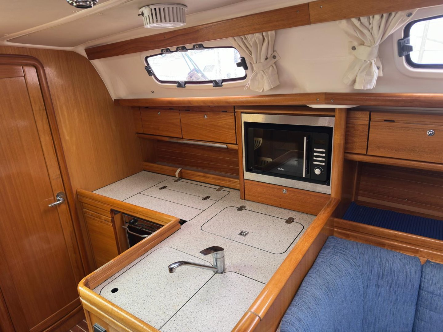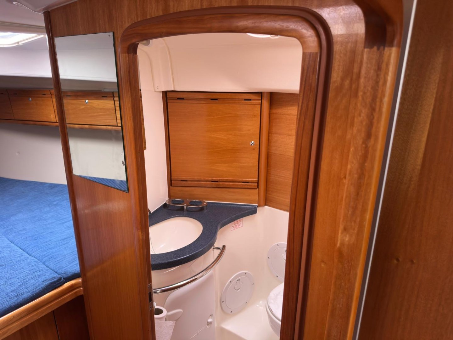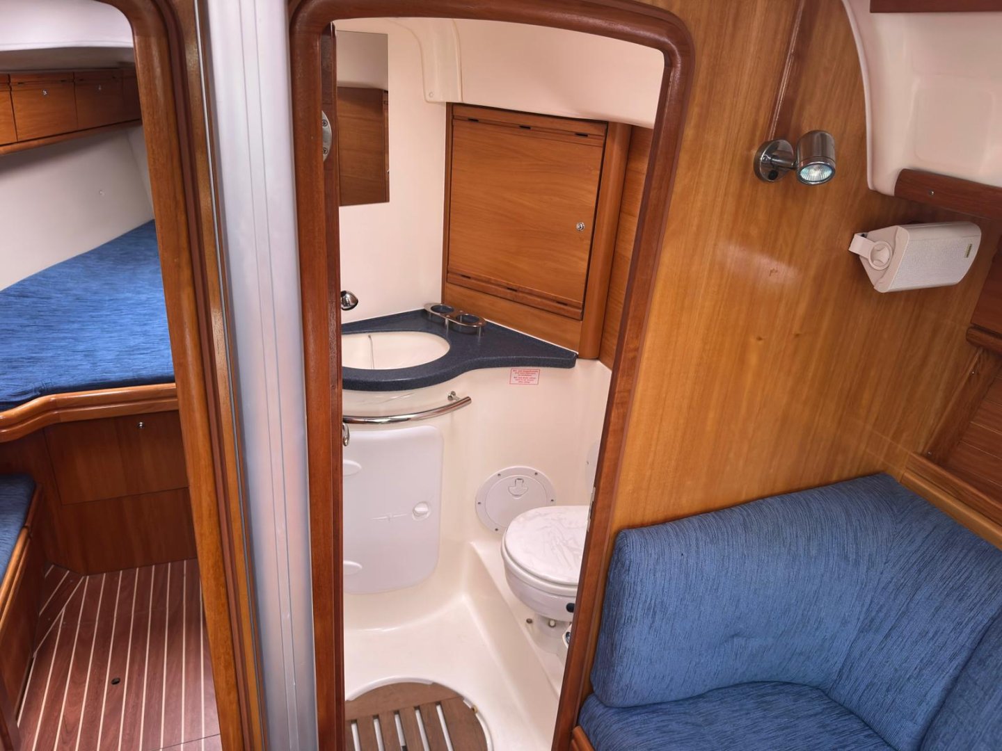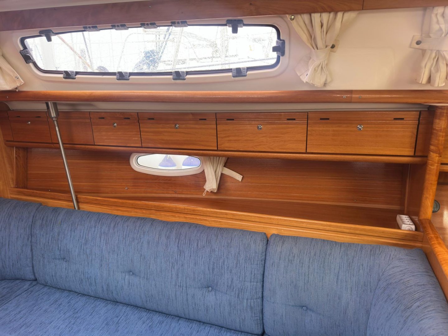 Carré lumineux, cuisine en L, 3 cabines, salle d’eau avec douche, eau chaude, sellerie soignée et nombreux rangements. Capacité d'eau totale de 360 L pour une vraie autonomie en croisière.