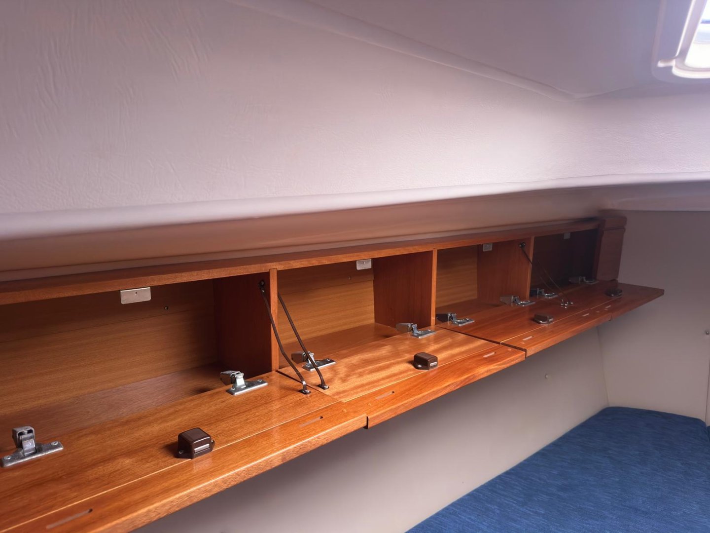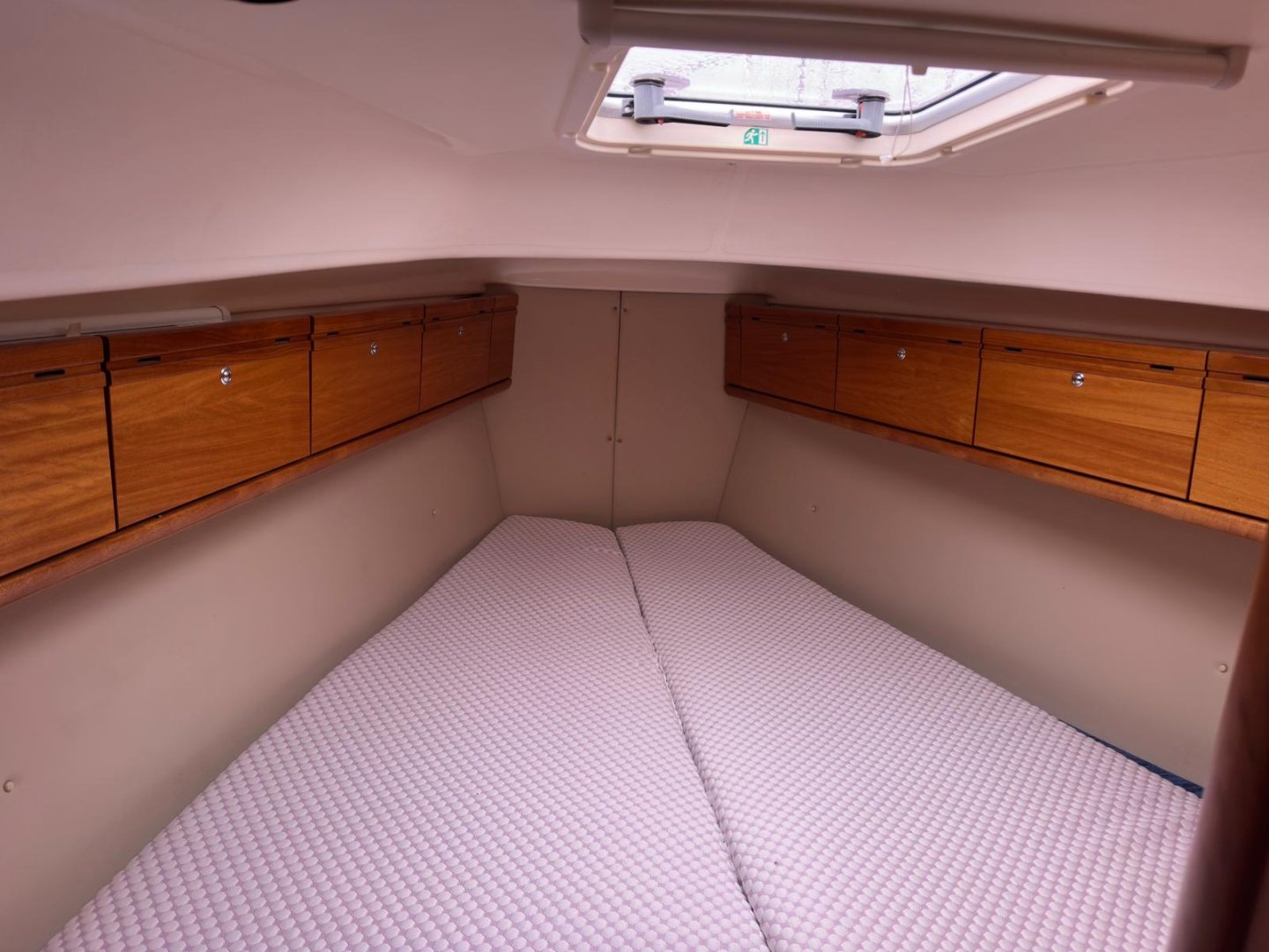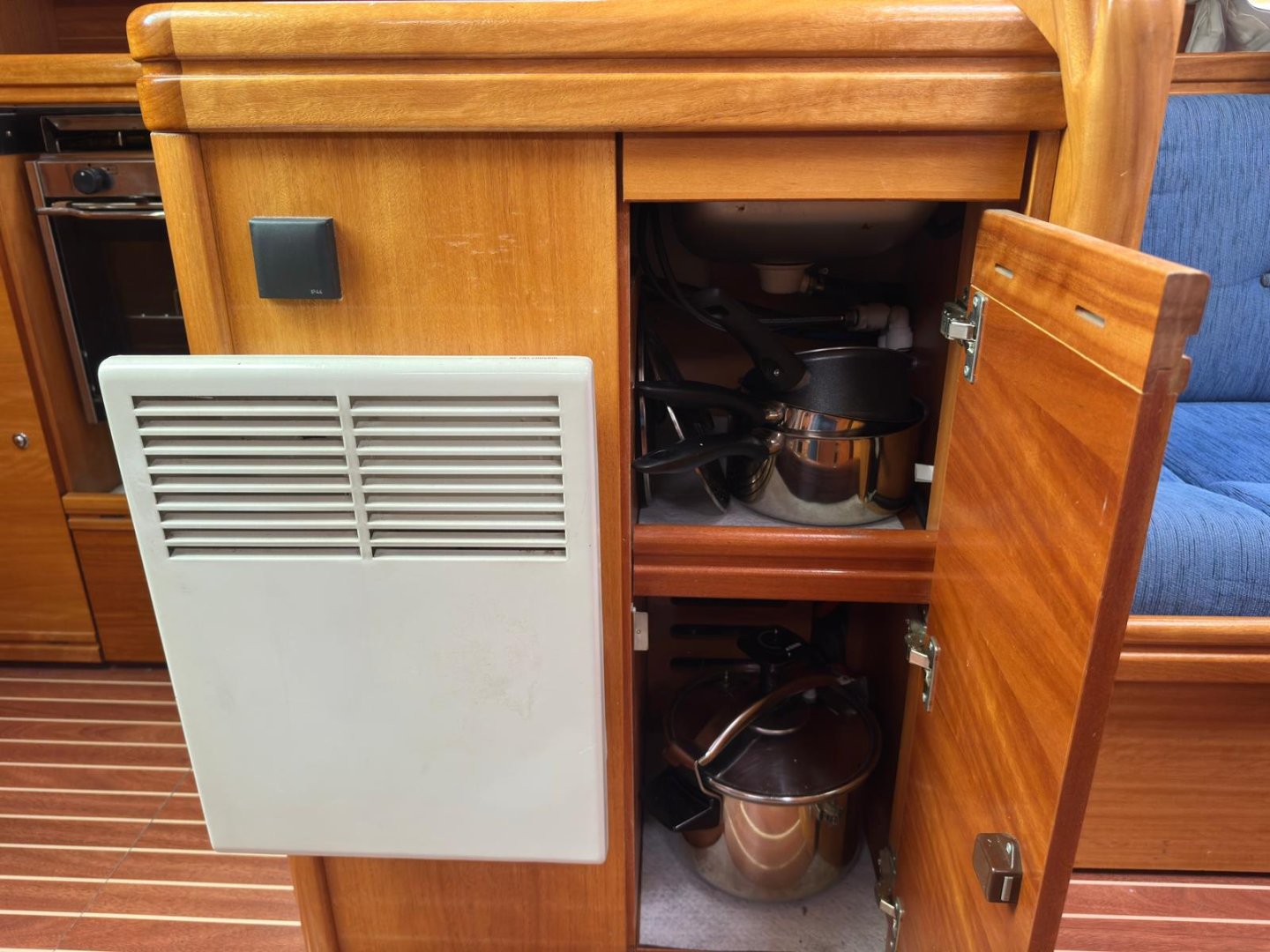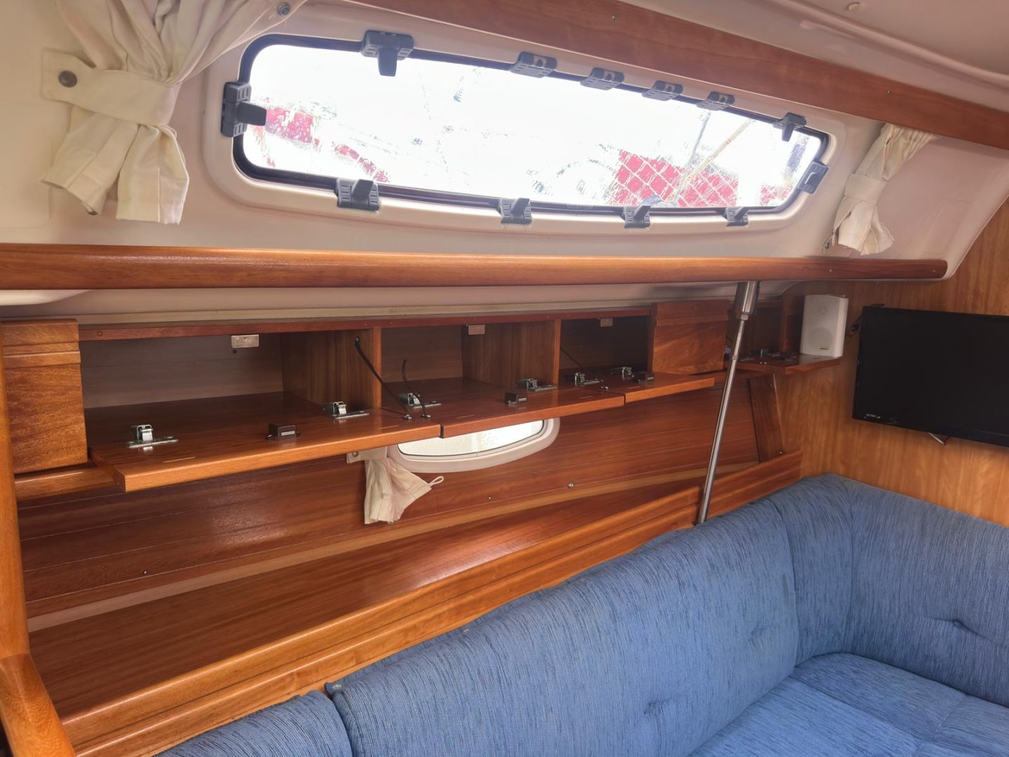 Carré lumineux, cuisine en L, 3 cabines, salle d’eau avec douche, eau chaude, sellerie soignée et nombreux rangements. Capacité d'eau totale de 360 L pour une vraie autonomie en croisière.