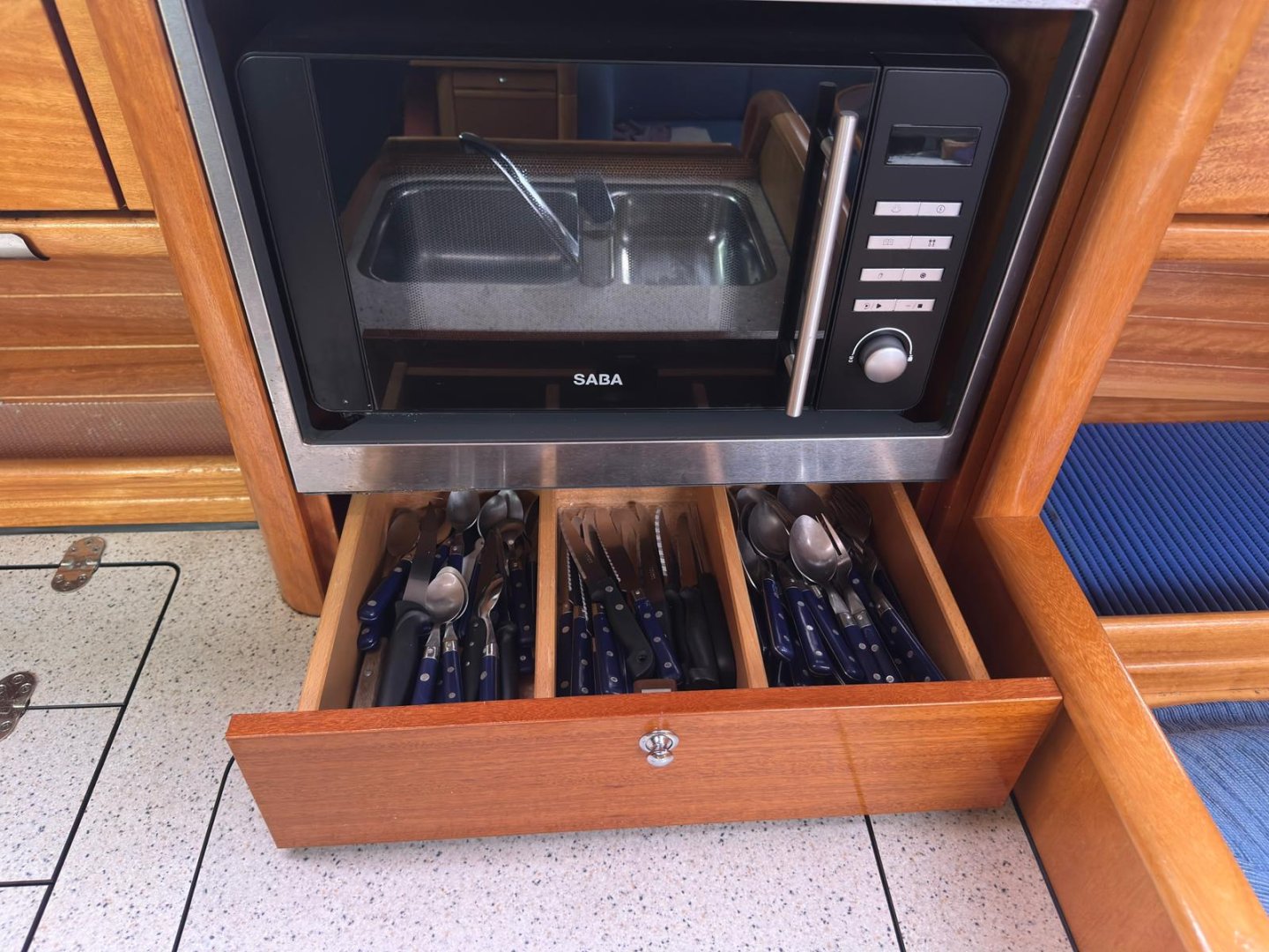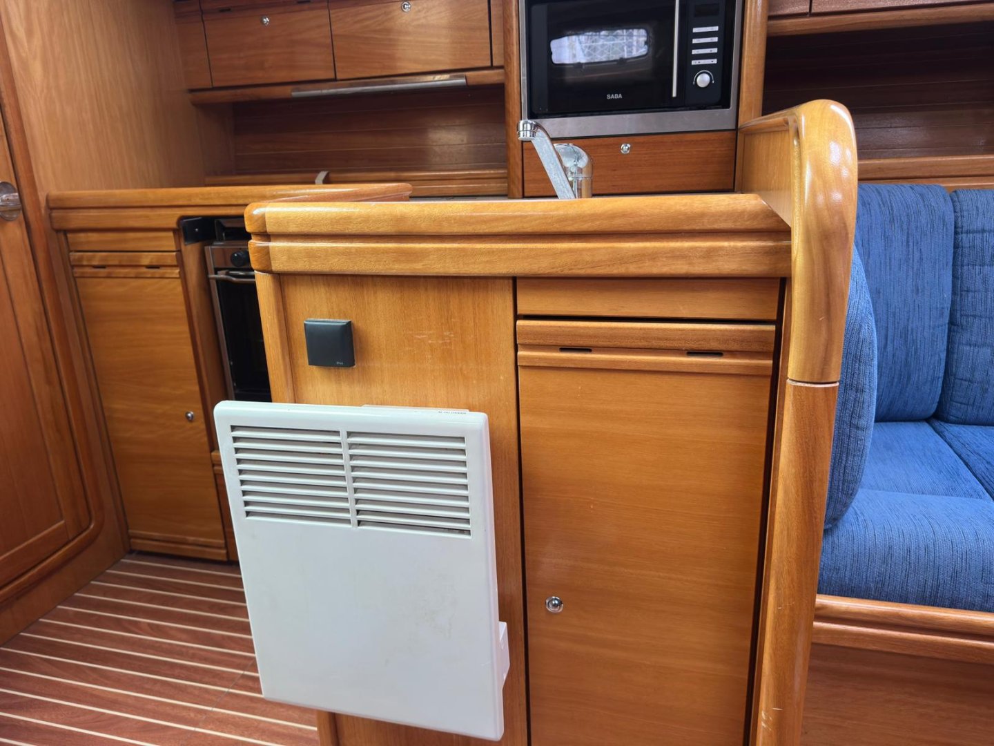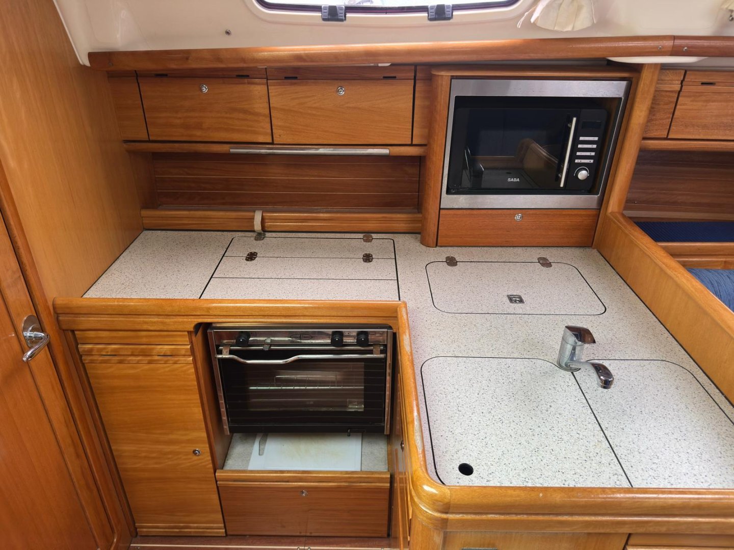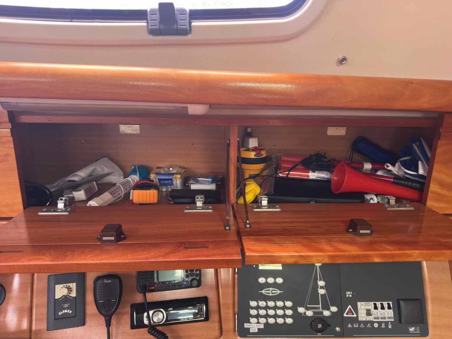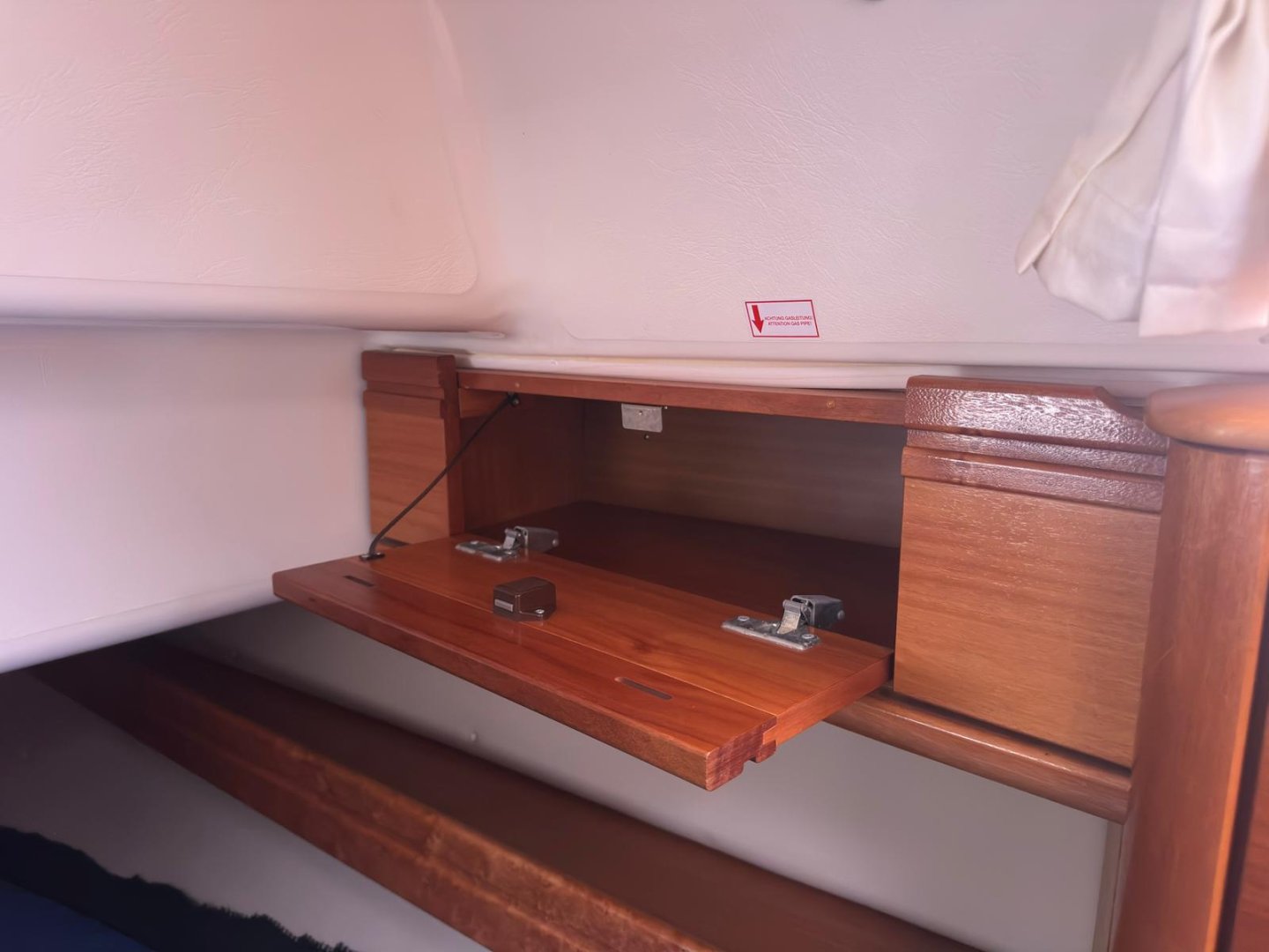 Carré lumineux, cuisine en L, 3 cabines, salle d’eau avec douche, eau chaude, sellerie soignée et nombreux rangements. Capacité d'eau totale de 360 L pour une vraie autonomie en croisière.