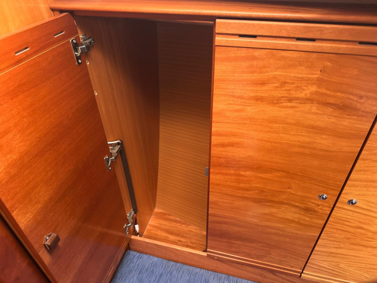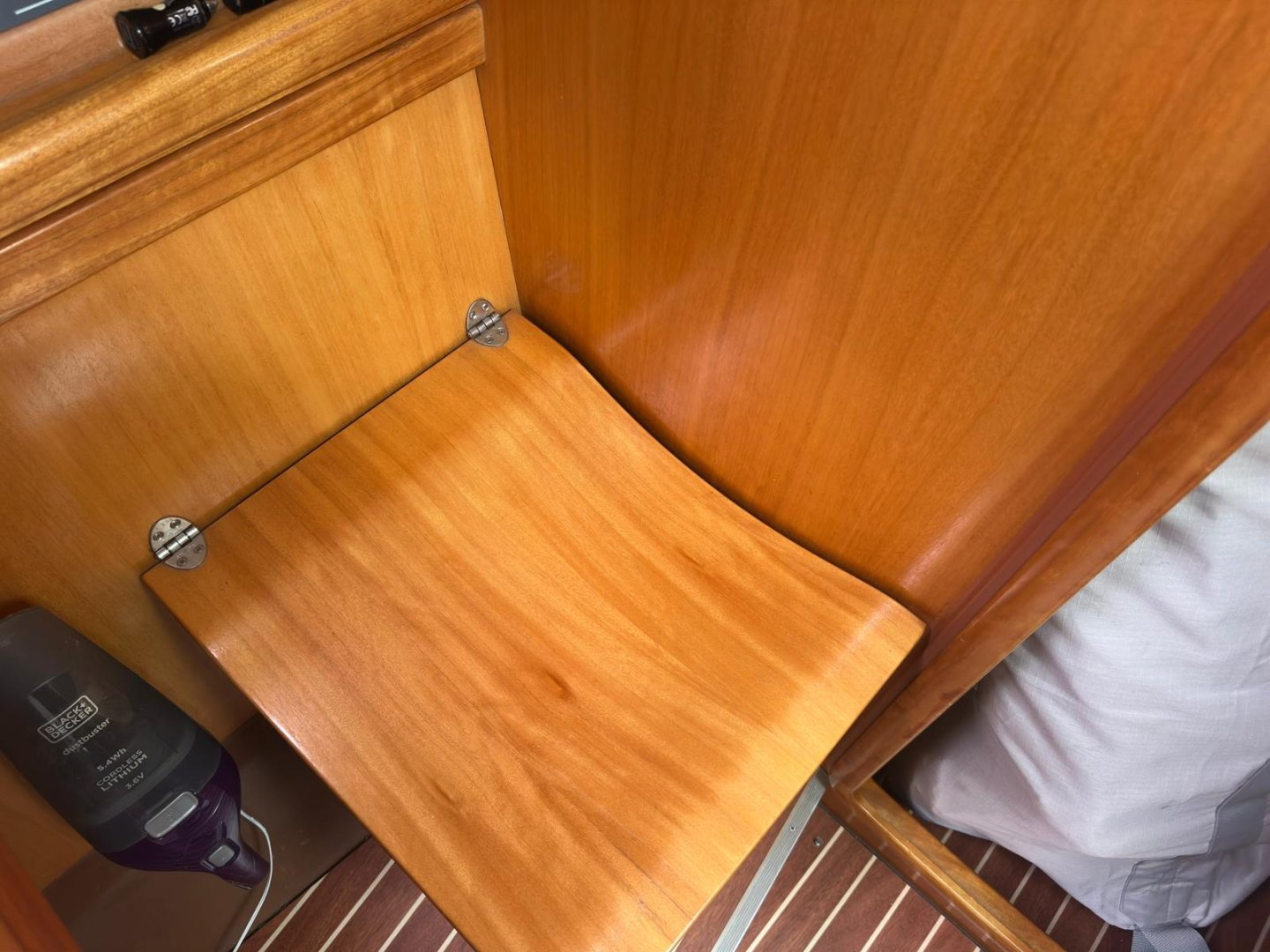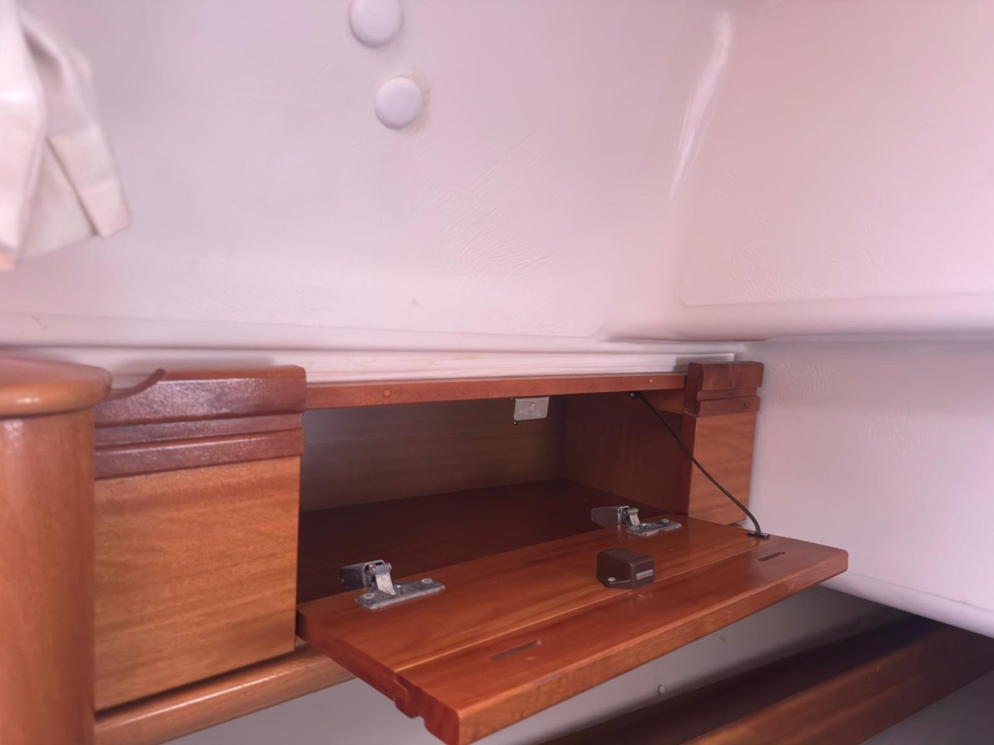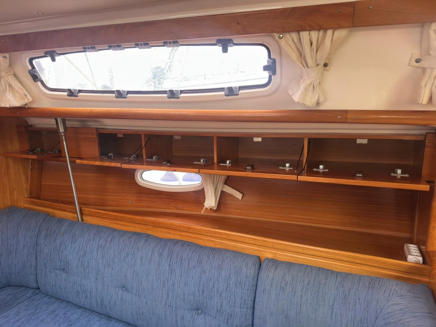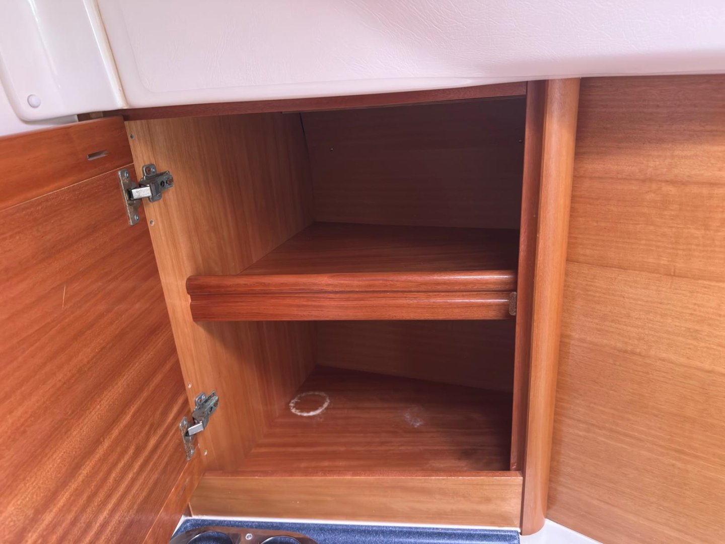 Carré lumineux, cuisine en L, 3 cabines, salle d’eau avec douche, eau chaude, sellerie soignée et nombreux rangements. Capacité d'eau totale de 360 L pour une vraie autonomie en croisière.