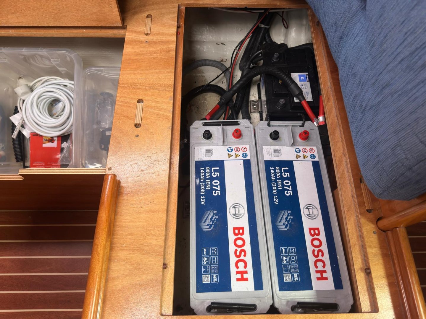 Installation électrique optimisée avec panneau solaire, batteries récentes et chargeur puissant. Électronique complète (pilote auto, AIS, VHF, instruments Raymarine).