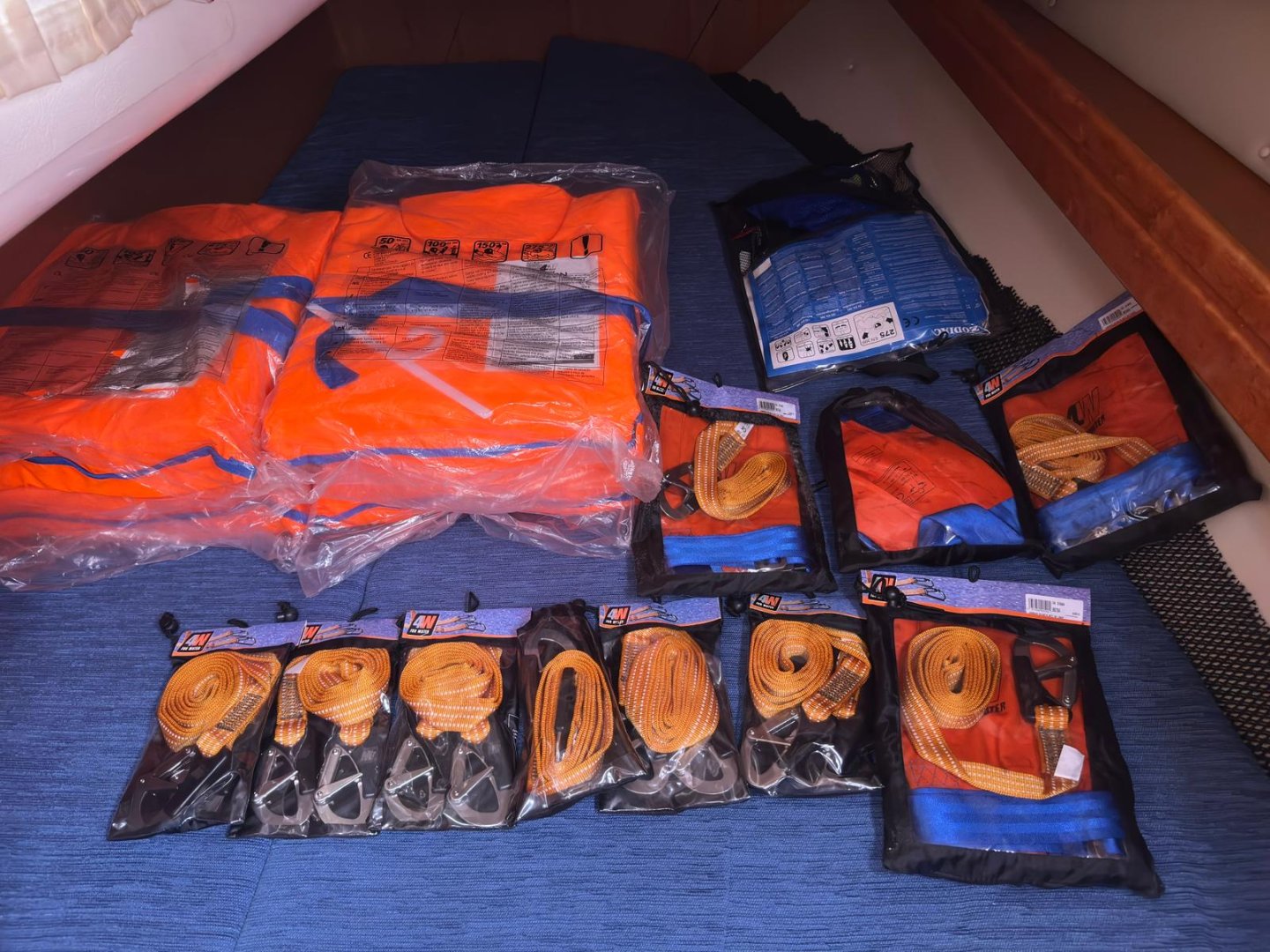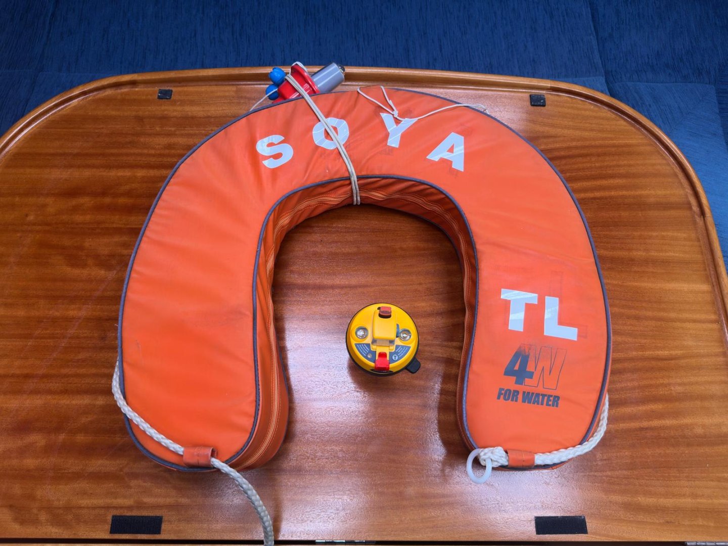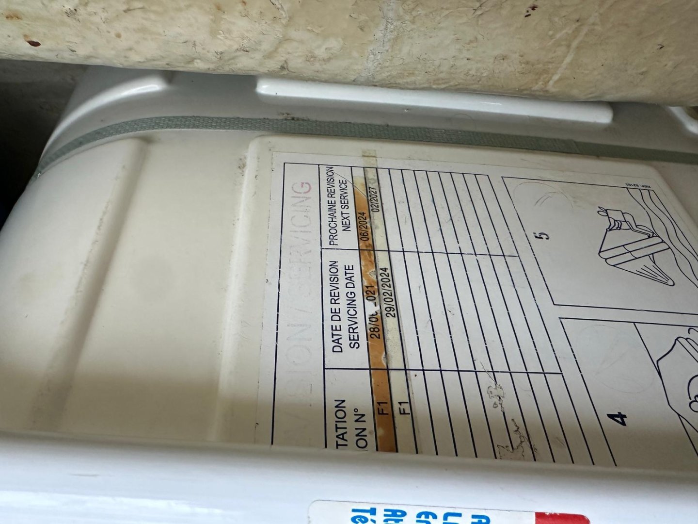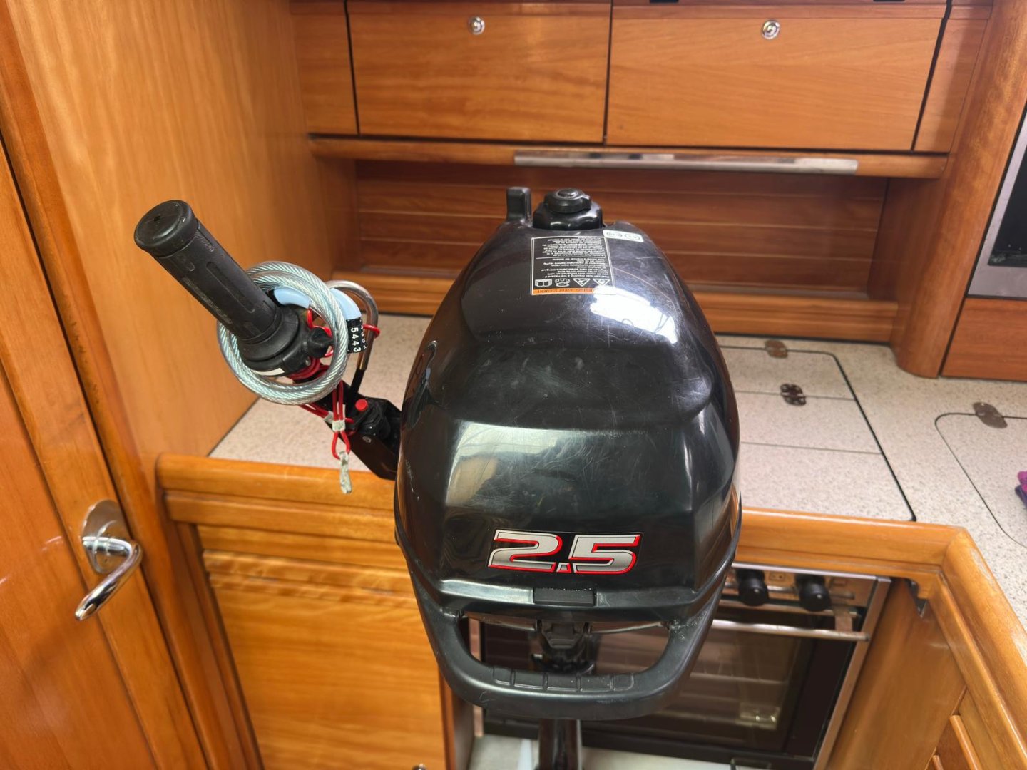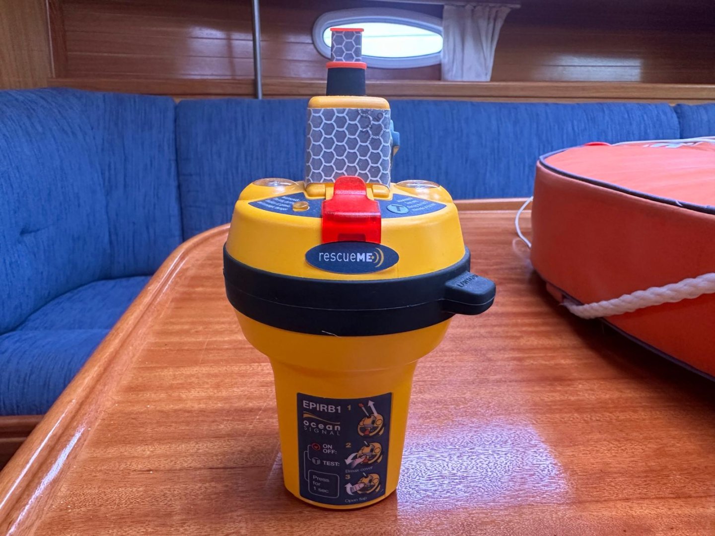 Armement hauturier, radeau révisé, EPIRB, guindeau électrique, capote et bimini. Annexe avec moteur hors-bord.