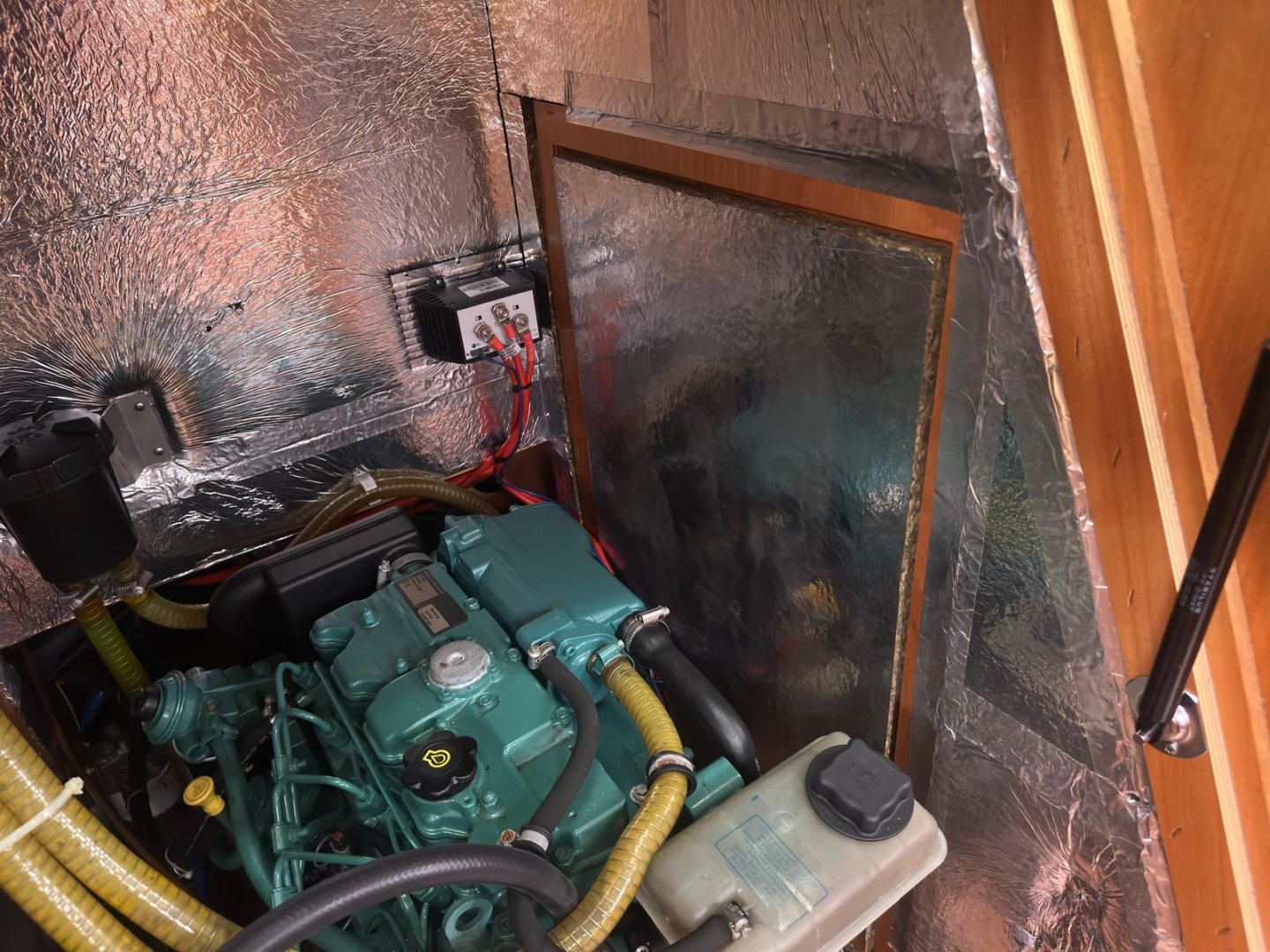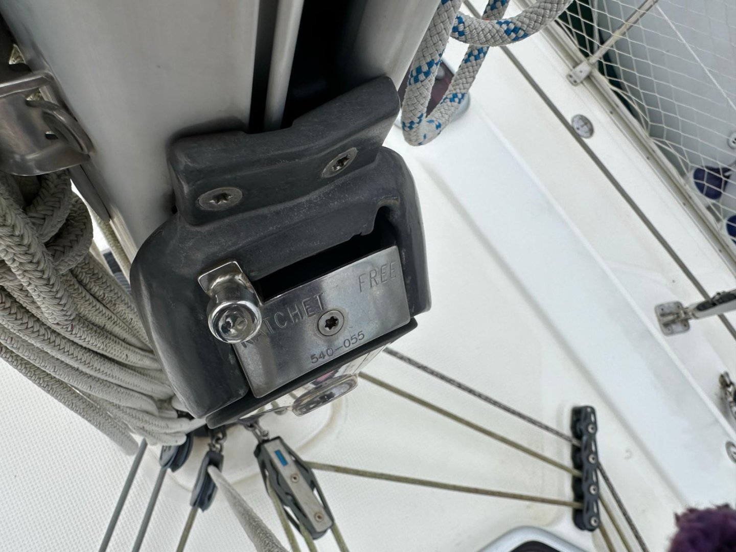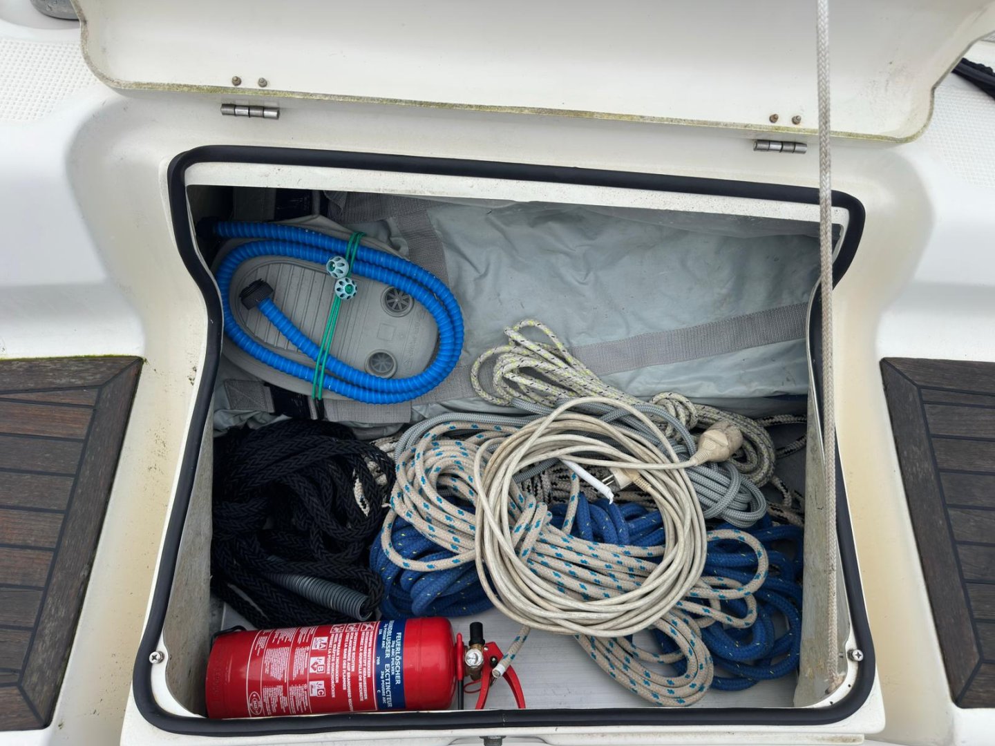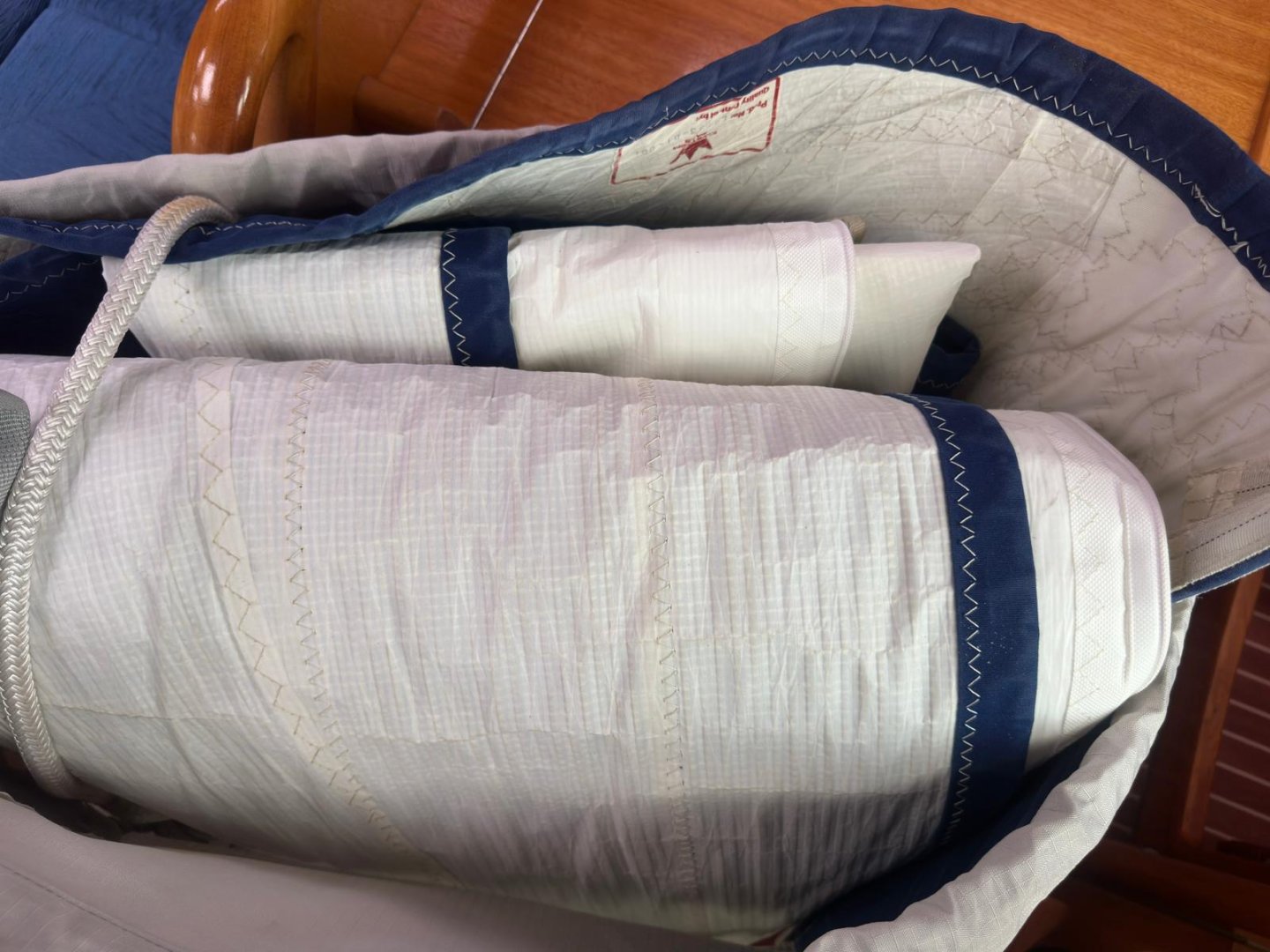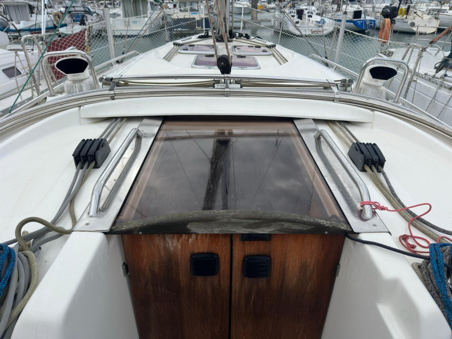 Moteur Volvo Penta D2-40 – 40 CV (1 600 h), entretien suivi. Gréement récent, grand-voile sur enrouleur, génois et Code 0 pour une navigation polyvalente et performante.