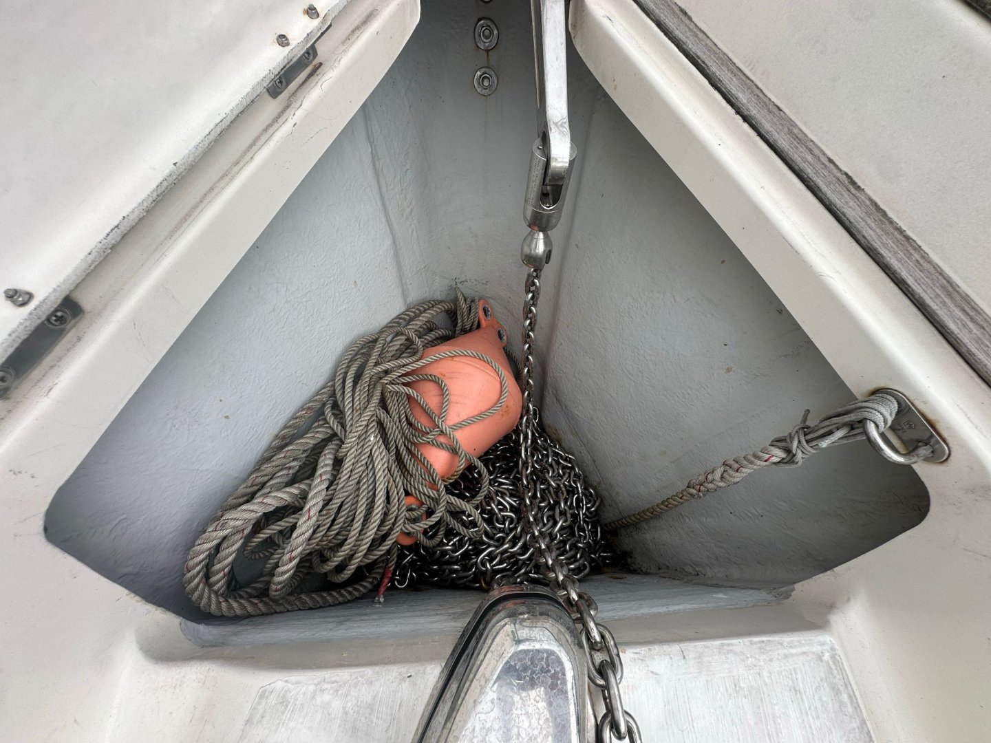 Mouillage secondaire, ancre plate VETUS, 10m de chaîne et 10m de bosse de mouillage