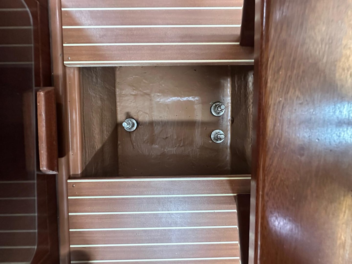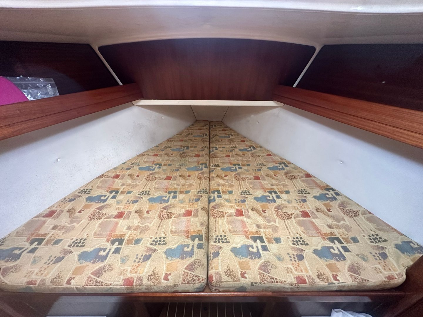 Tous les coussins du bord ont été recouverts de skaï blanc en 2016 (hors matelas des couchettes avant et arrière)