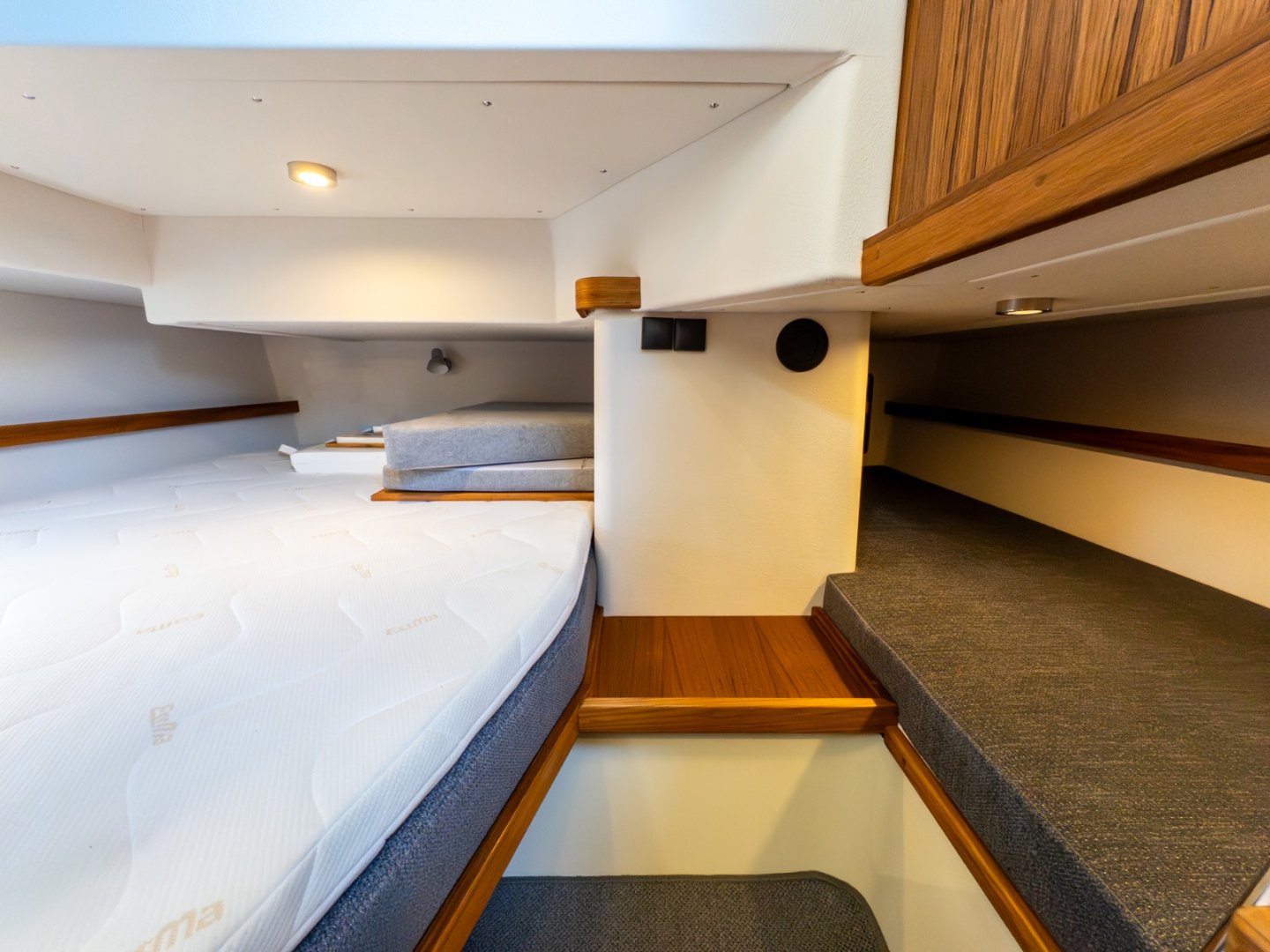 Premier de la gamme à offrir deux cabines doubles distinctes, le Targa 30.1 est idéal pour les croisières en famille ou les week-ends entre amis. Confortable et spacieux, il dispose aussi d’un couchage supplémentaire et d’une belle salle d’eau à l’arrière.