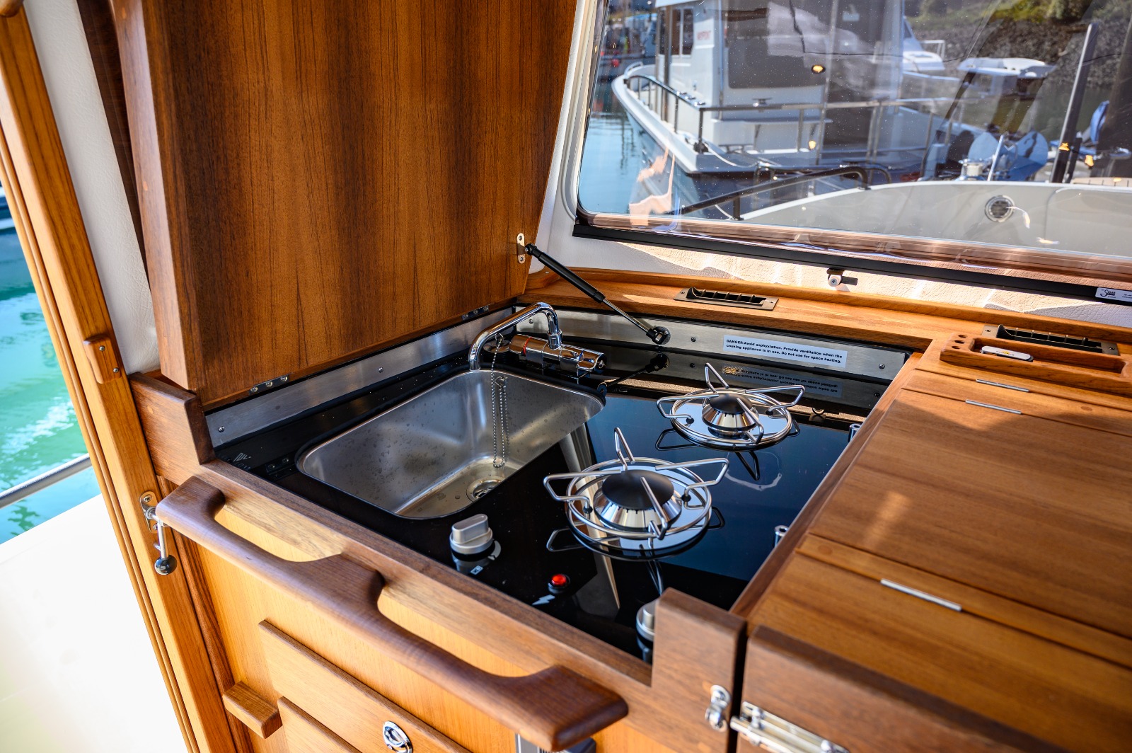 Nouveauté 2025 : le chantier a développé une baie vitrée arrière, offrant un accès facilité et une circulation encore plus fluide à bord. Disponible au printemps 2025.